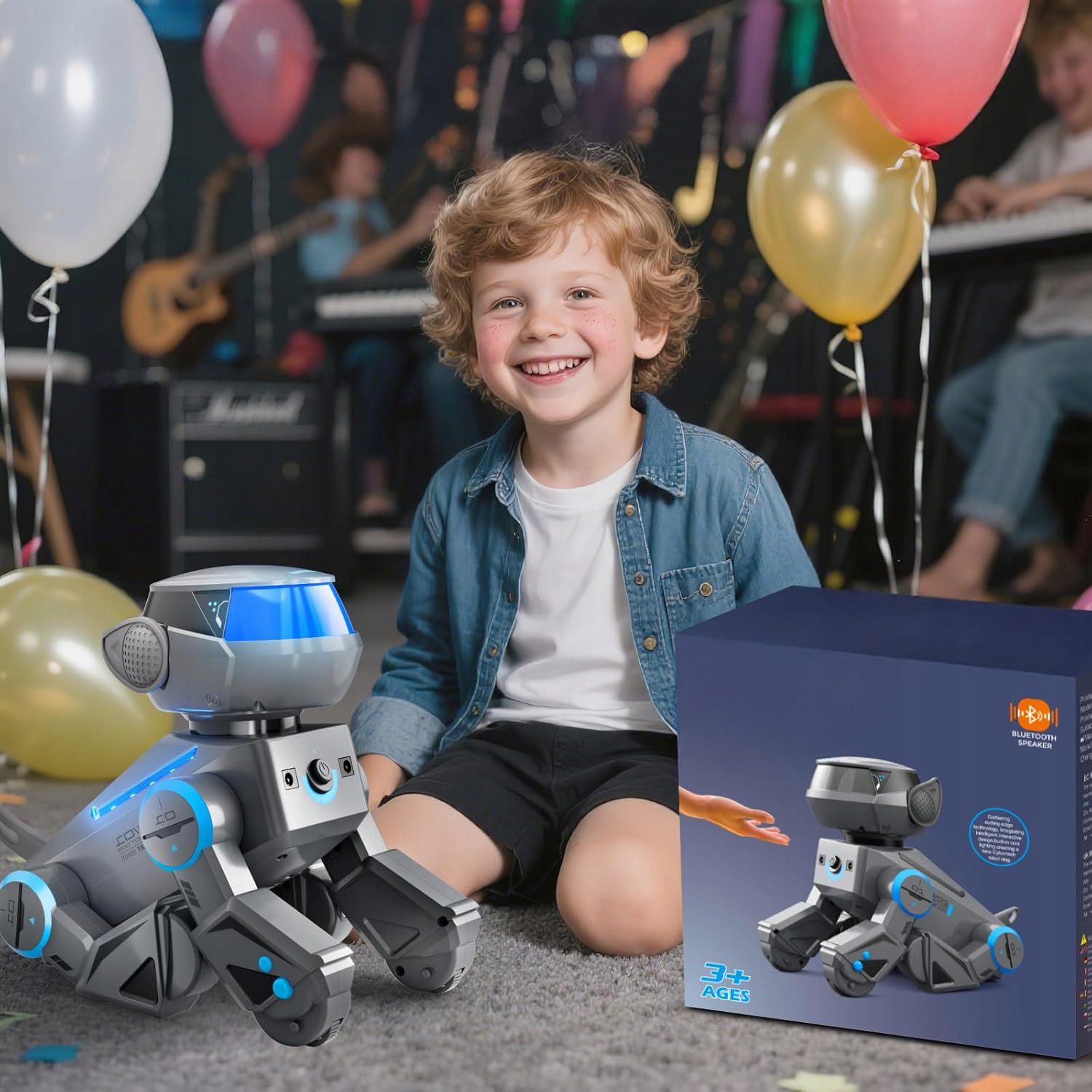 Эта умная собака-робот наверняка понравится вашему ребенку! Его футуристический дизайн и яркая динамичная подсветка при включении создают сильную технологичную атмосферу. Он может воспроизводить музыку, программировать действия и взаимодействовать с вами, как настоящая собака — выполняет команды и мило себя ведет. Будь то день рождения или праздник, этот технологически продвинутый, креативный и чрезвычайно интерактивный робот-собака станет идеальным подарком.