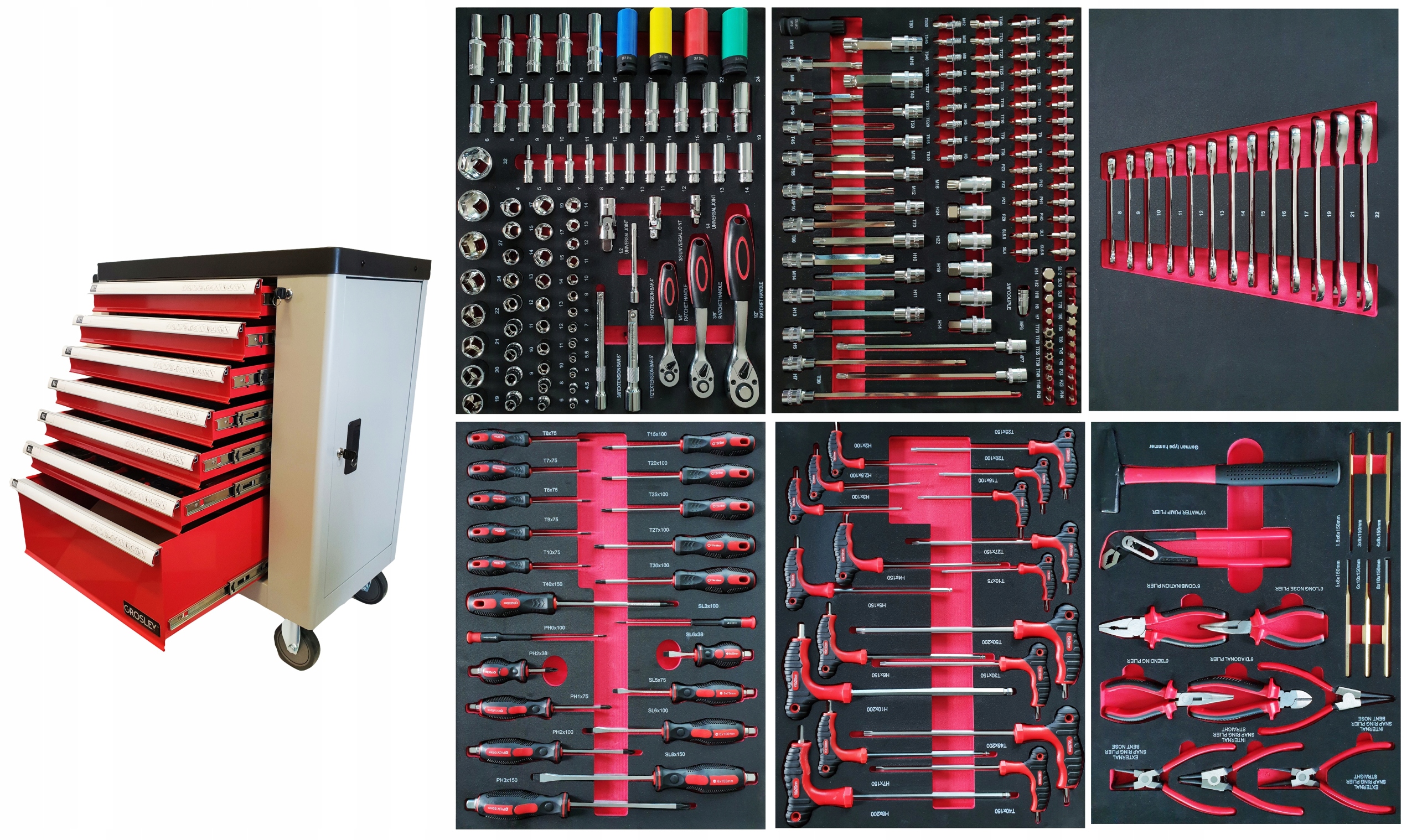 - Наборы инструментов, расположенных в мягкой пене, дополнительно укрепляют, они занимают 6 ящиков + один ящик бесплатно.