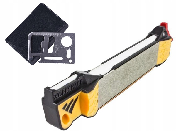 Работайте резкая точилка с гидом, компактная точилка, разработанная специально для использования в полевых условиях. Алмазные балки, керамические стержни, кожа и нижний колонтитул для правильного угла заточки обеспечивают быстрое, простое и всеобъемлющее решение. Нож можно легко заточить с помощью встроенного угла 20 ° и 25 °. Они были предназначены для охотничьих ножей, ножов и филе. Заменяемые плитки расположены с сильным магнитом, а под тарелкой находится место для хранения с руководством, чтобы заточить стрелки. Точилка подходит для зубчатых ножей, садовых инструментов, ножниц, крючков, мачете и многого другого.