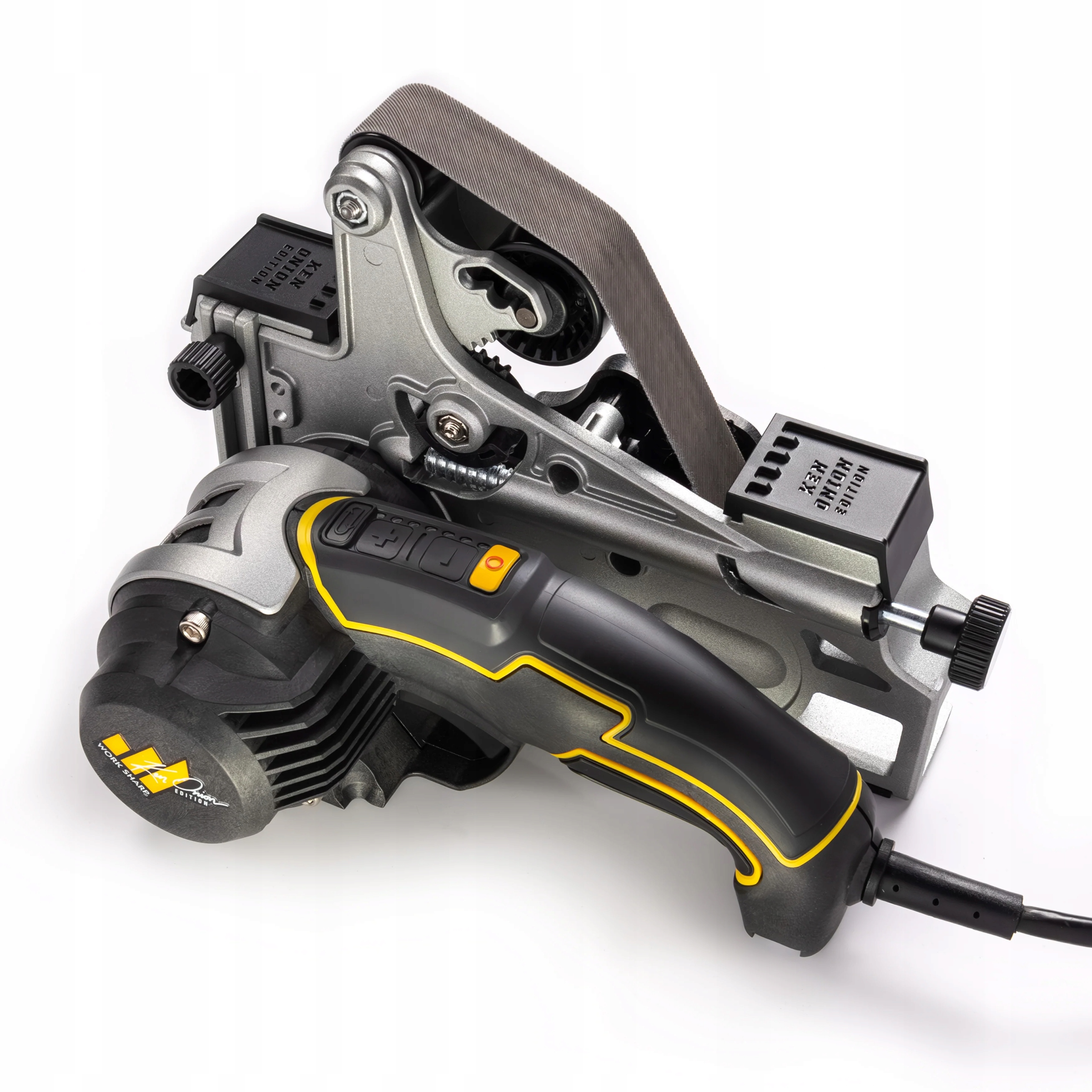 напряжение шлифовального ремня контролируется системой из 4 роликов . Руководства и эталонные плитки гарантируют полный контроль независимо от того, точили ли вы правой или левой рукой.