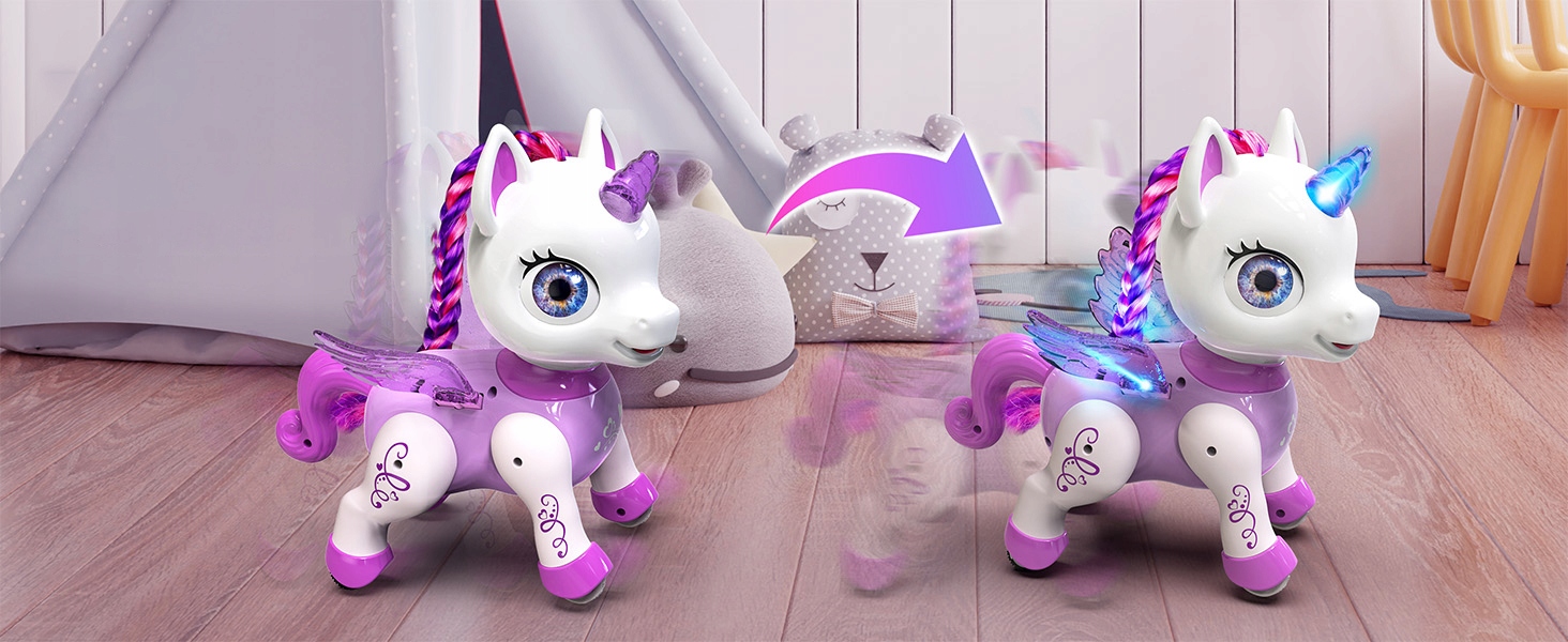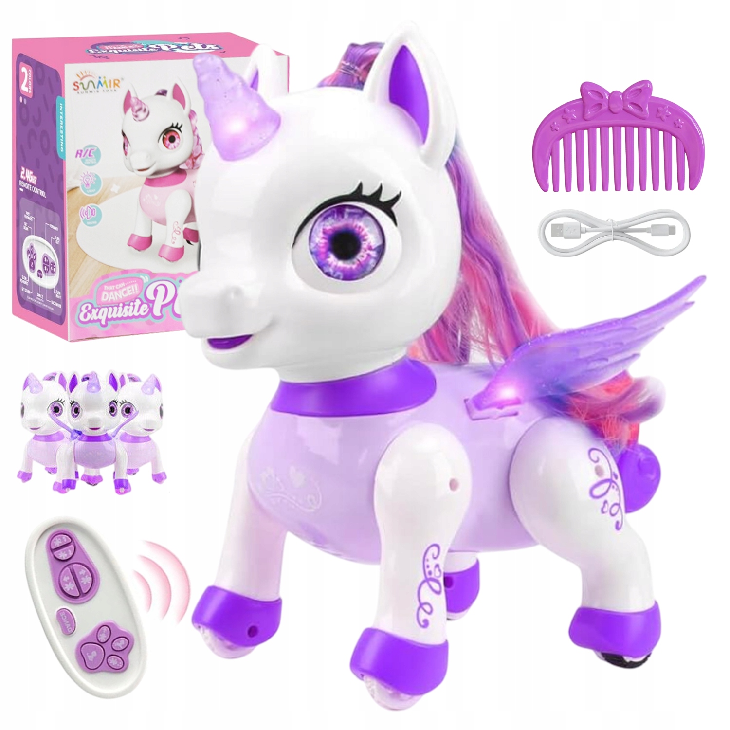 🌟 Интерактивный робот-единица с пультом дистанционного управления- b> Этот очаровательный, фиолетовый отрядчик сочетает в себе элементы робототехники и фантазий, что делает более 10 забавных движений, таких как танец, скольжение и избегание препятствий на давление кнопки. Блестящий светодиодный угол и крылья усиливают волшебный опыт веселья!