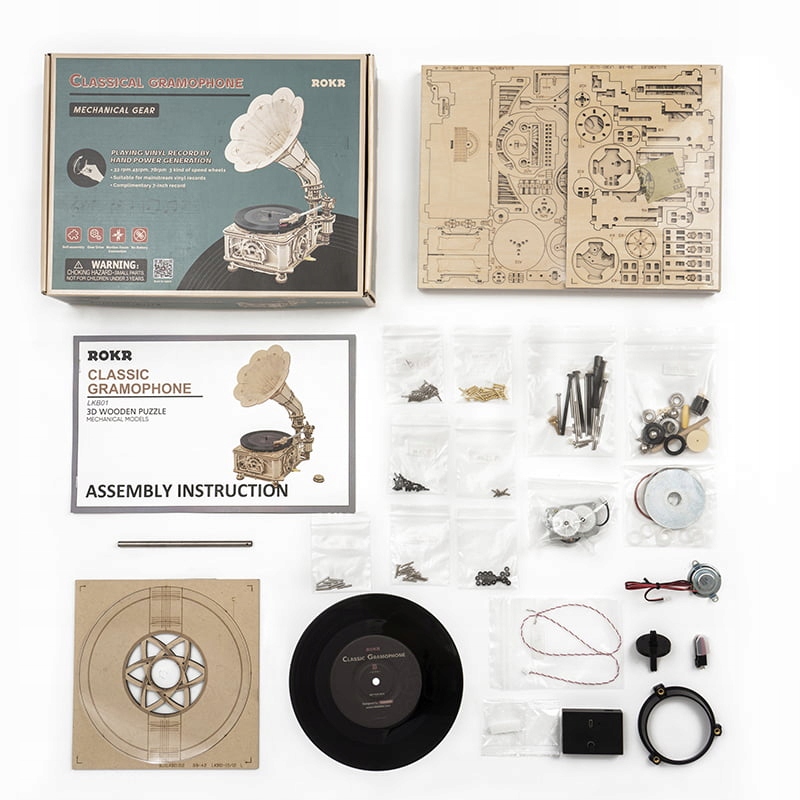 Robotime Gramofon Classical Gramophone (Elektryczna) Drewniane Puzzle