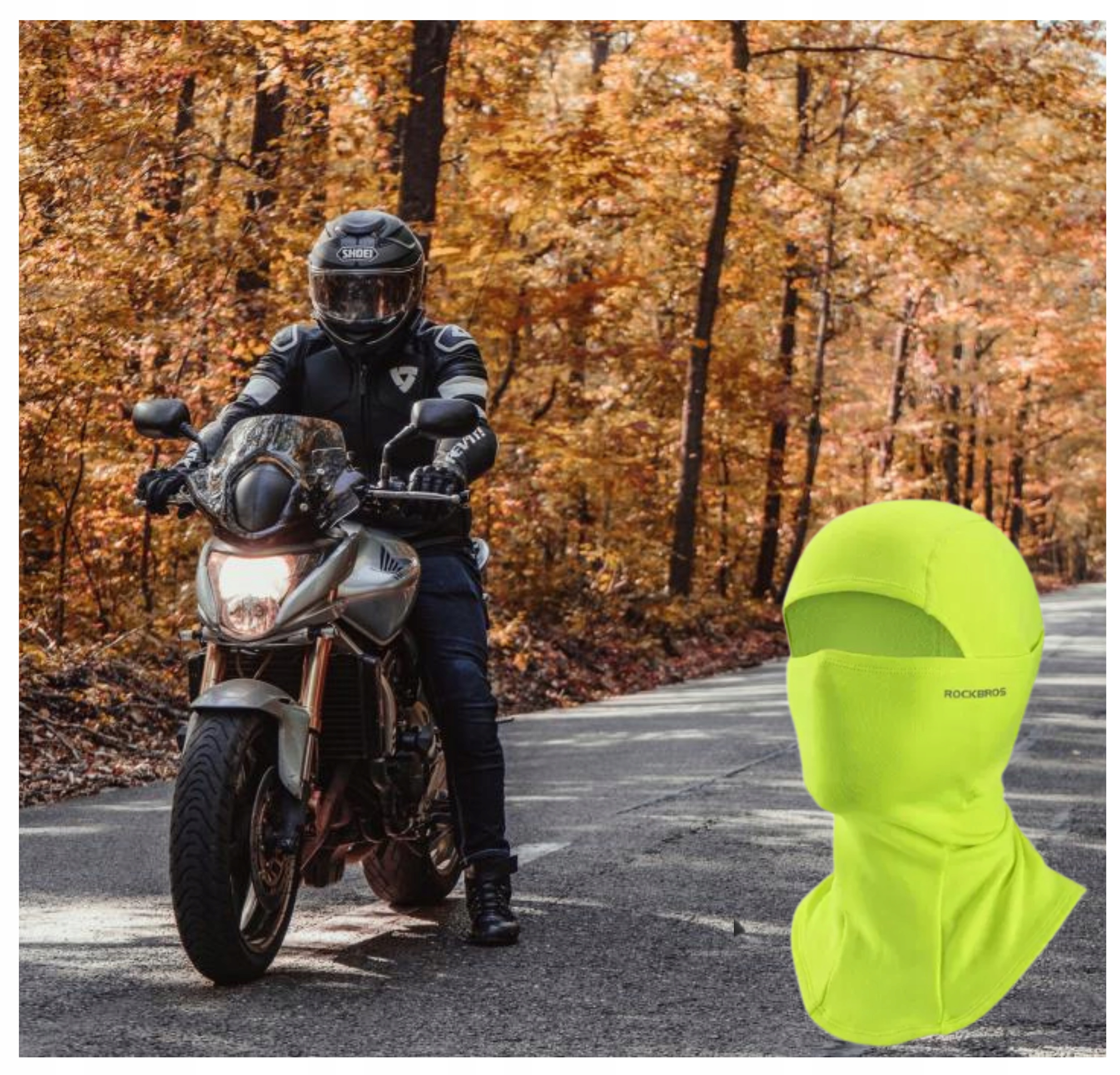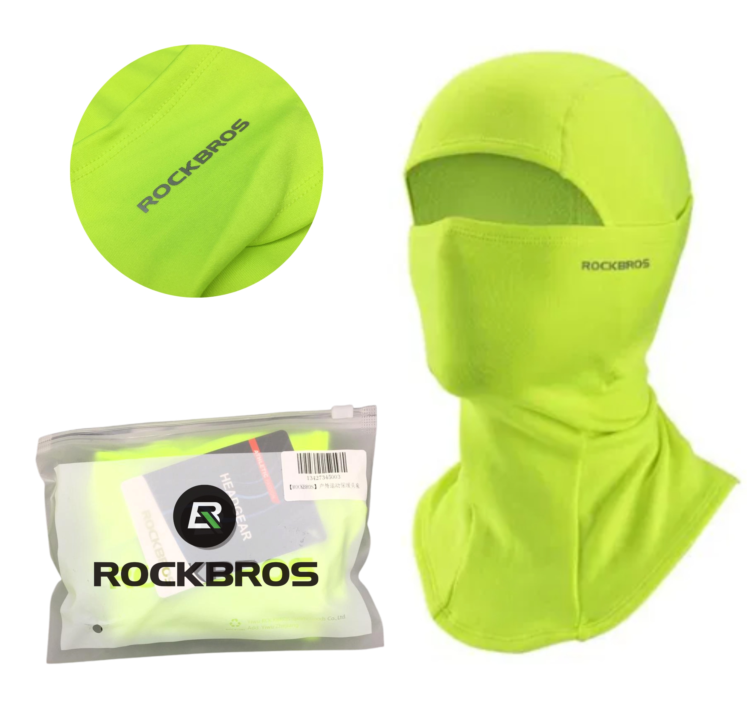 МОТОЦИКЛОВАЯ БАЛАКЛАВА ТЕПЛЫЙ ROCKBROS ЦВЕТ ЛАЙМОВЫЙ для лица, губ, всего лица флис
