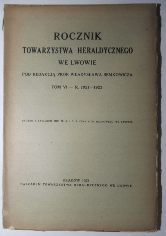 Rocznik Towarzystwa Heraldycznego Tom VI 1921 - 1923, LITWA, KRESY