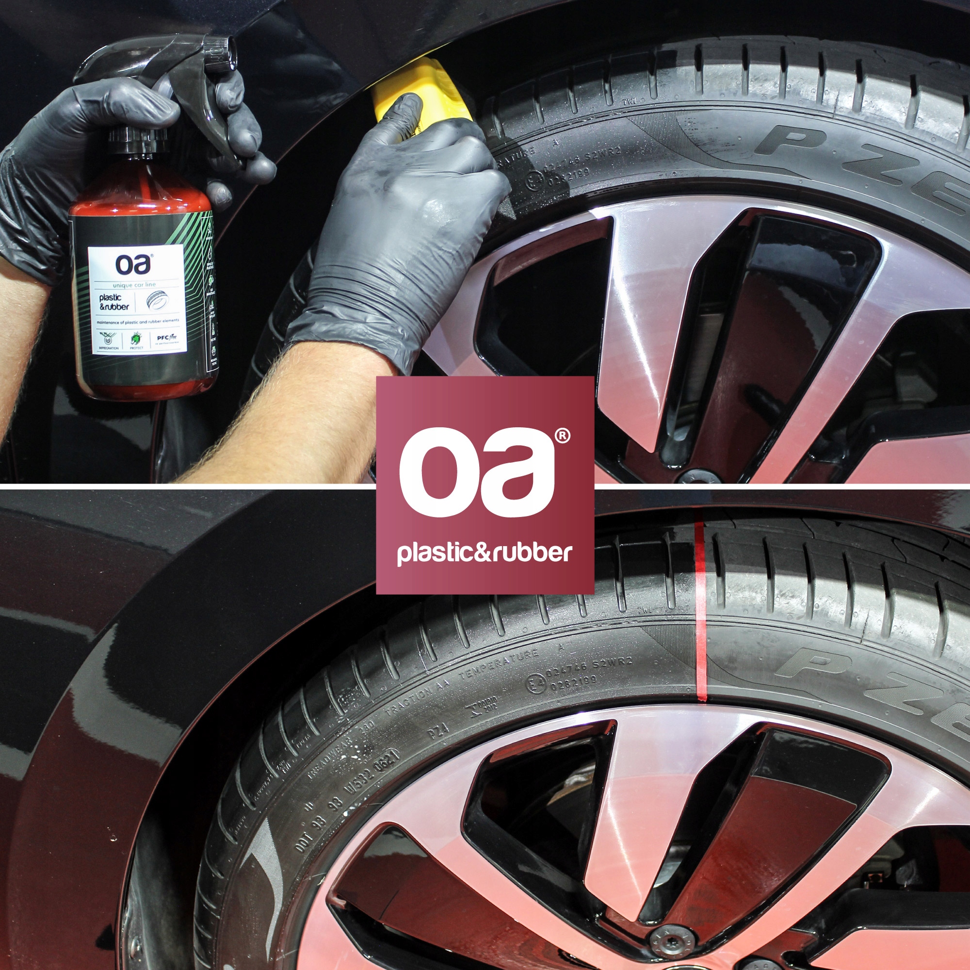 Пропитка для резиновых и пластиковых элементов снаружи автомобиля OA CAR PLASTIK&RUBBER с эффектом мокрых шин. Безопасно для окружающей среды без ПФУ, 250 мл.