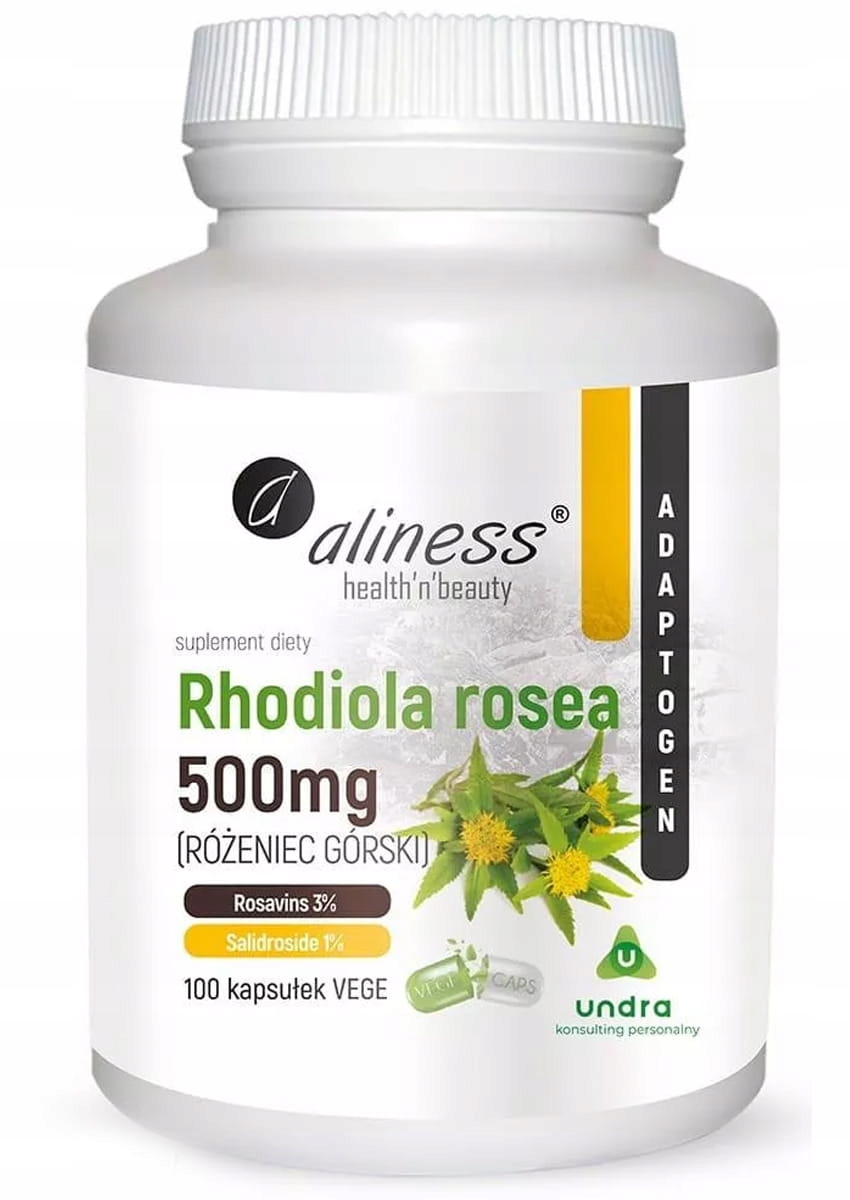 Экстракт родиолы розовой является источником многих активных веществ, положительно влияющих на работу организма, среди которых наиболее важными являются розавин и салидрозид. Экстракт, содержащийся в нашем продукте, был произведен в Европе и получен из вида Rhodiola Rosea, поэтому он характеризуется подходящим соотношением розавинов к салидрозиду 3:1 и высокой двойной стандартизацией 3% родиолавинов и 1% салидрозида.