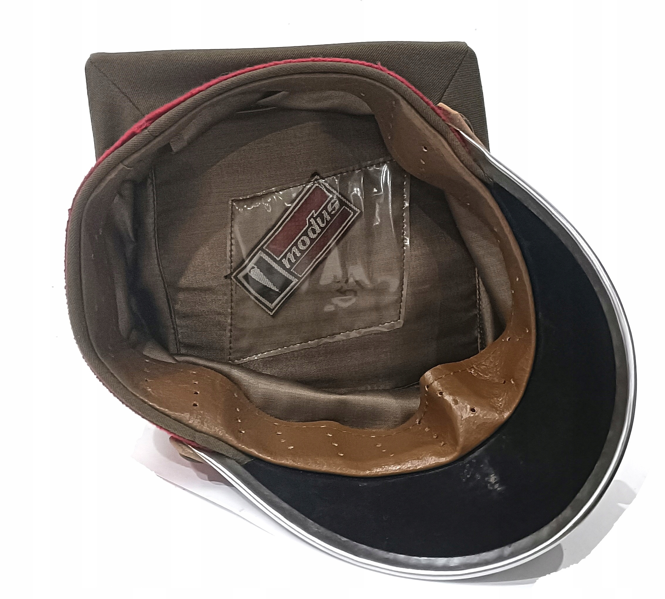Черный лакированный купол с металлической фурнитурой имеет длину 6 см и наклонен под другим углом, чем у более поздних моделей рупоров WP. Подкладка выполнена из кожаного ремешка шириной 1,5 см, оснащенного металлической прямоугольной пряжкой, 8 отверстиями для штифта и двумя кожаными бегунками шириной 0,8 см каждый. Подкладка крепится к кепке с помощью двух маленьких форменных пуговиц диаметром 15 мм и орла без короны.