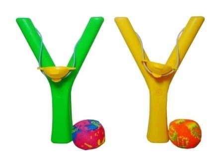 Рогатка с шариком, который нужно размачивать в воде. После замачивания их можно бросить кому-нибудь, например, чтобы они остудились. Товар упакован в прозрачный пакет. Игрушка для детей от 3 лет.