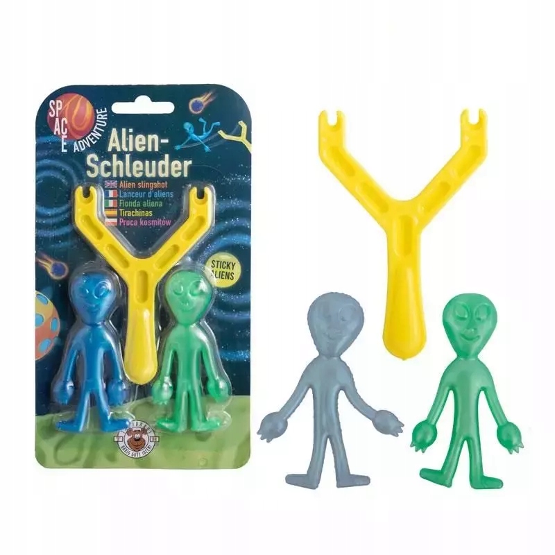 ✔️ Прячьтесь – инопланетяне идут! В этот набор входит рогатка для пальцев с двумя липкими инопланетянами. Он идеально подходит для всех детей, которые любят пошалить. Просто крутите, цельтесь и стреляйте! В бою с друзьями ты сможешь показать, как далеко может летать твой инопланетянин! Вы можете легко очистить все это теплой водой с мылом. Набор доступен в двух цветовых вариантах: сине-зеленый, серебристо-зеленый