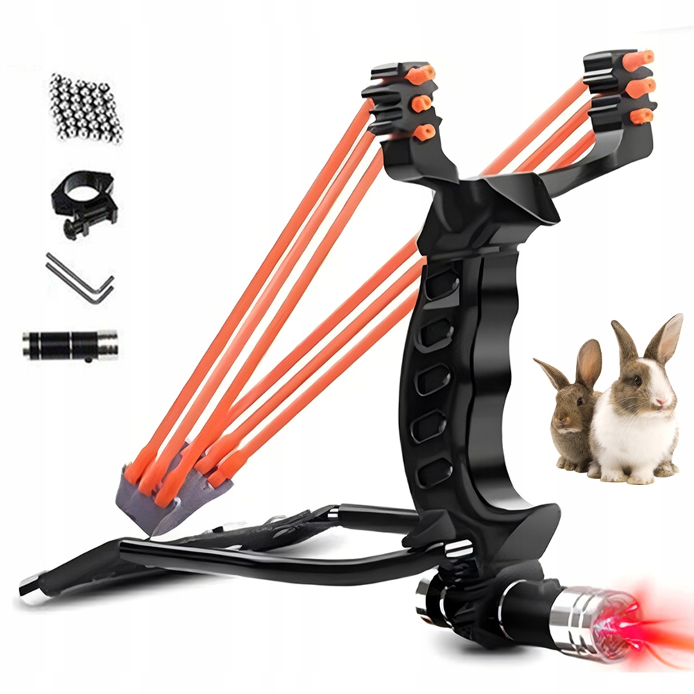 Рогатка с лазерным прицелом + ПРОЧНАЯ ТРОЙНАЯ РЕЗИНА И 100 ШАРИКОВ
