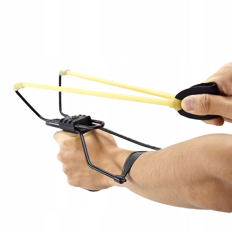 Рогатка представляет собой высокопроизводительную рогатку из металла, оснащенную эргономичной рукояткой из пластика оранжевого цвета и удобной подставка для запястий, которая значительно повышает точность стрельбы.