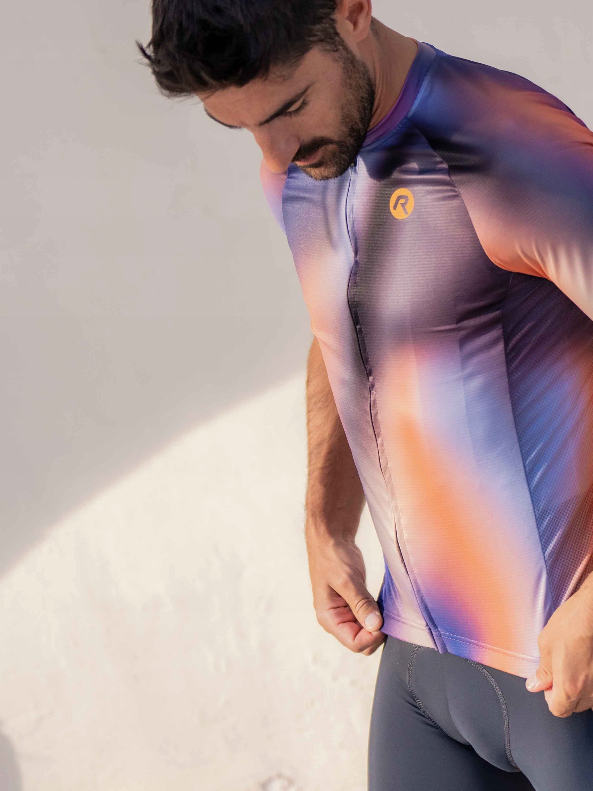Halo — это высококачественная велосипедная майка со стильным принтом, а ее красочный градиент подчеркивает современный дизайн майки.