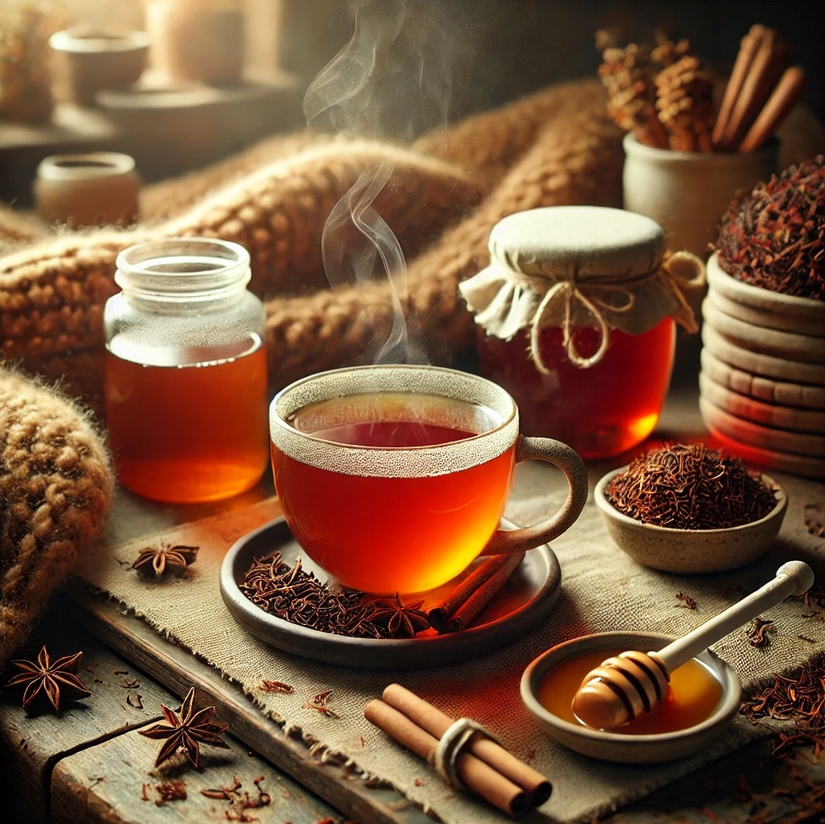Ройбуш — уникальный красный кустарниковый чай из Южной Африки, отличающийся мягким медовым вкусом и отсутствием кофеина, что делает его идеальным выбором для вечера. Он богат антиоксидантами, которые поддерживают иммунитет и защищают организм от свободных радикалов. Ройбуш также может помочь уменьшить стресс и поддержать здоровье пищеварительной системы. Благодаря своей естественной сладости он хорошо сочетается со специями и фруктами, создавая вкусные настои как в горячем, так и в холодном виде.