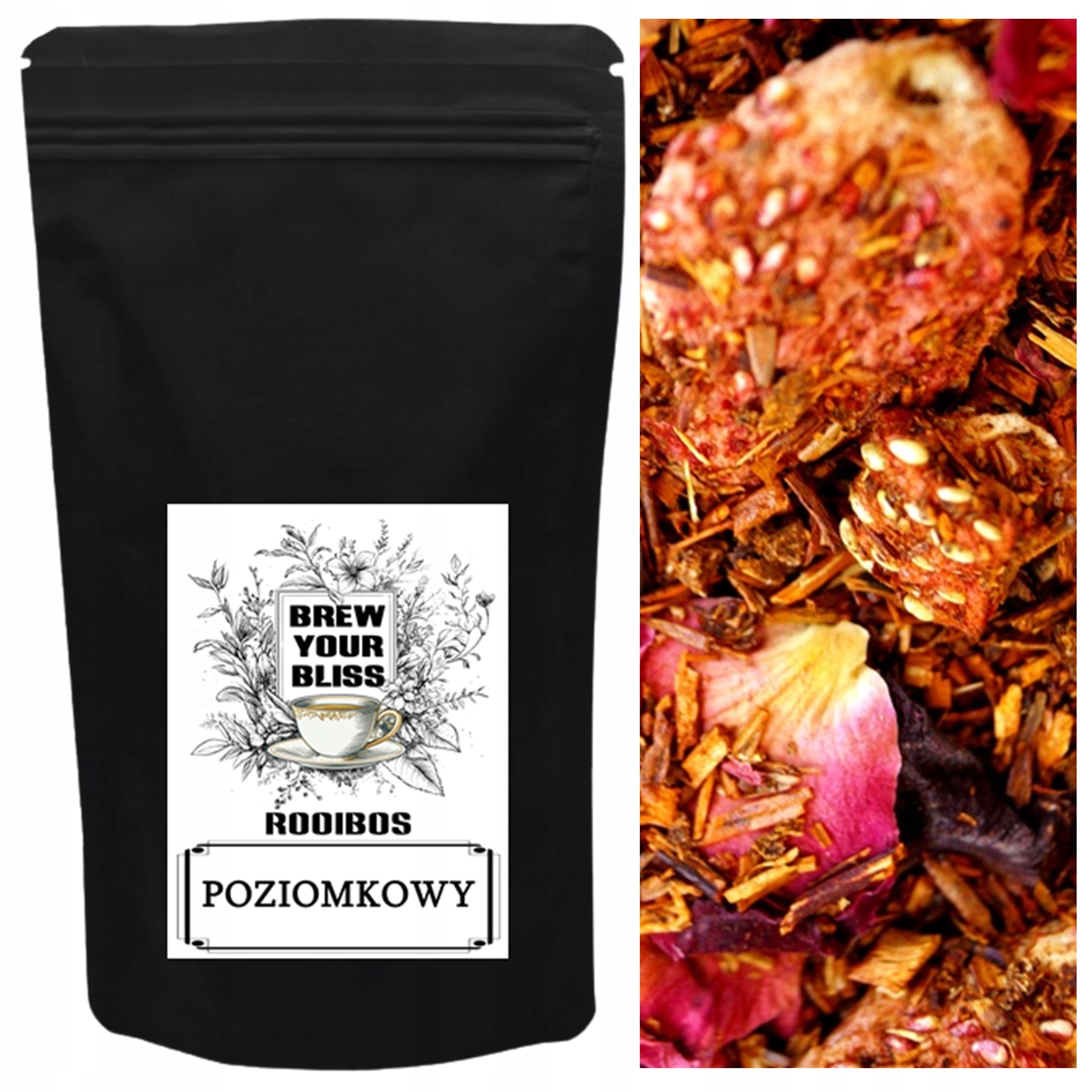- Состав: превосходный южноафриканский чай ройбуш, сублимированная клубника, лепестки роз, аромат земляники.