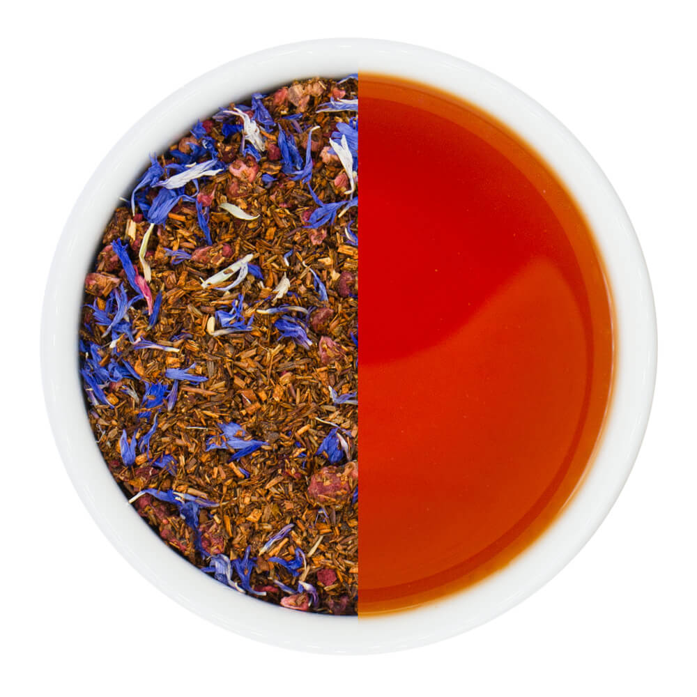 Состав: ройбуш 85%, малина сублимированная 10%, цветки василька, ароматизатор