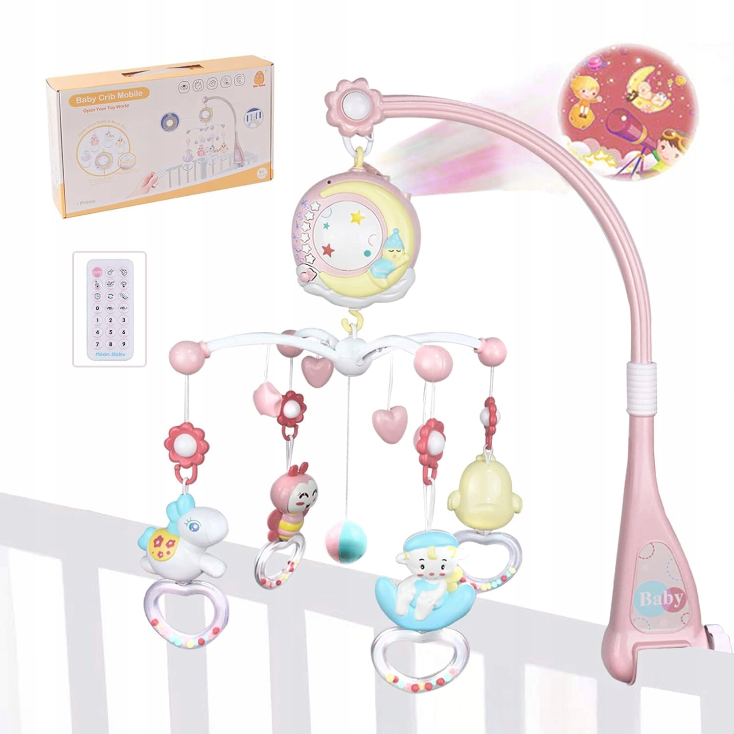 РОЖЕВА КАРУСЕЛЬ ДЛЯ ЛІЖЕЧКА МУЗИЧНА ШКАТУЛКА ПРОЕКТОР ПІДВІСНИЙ НІЧНИК
