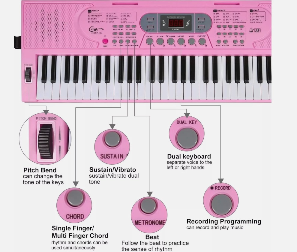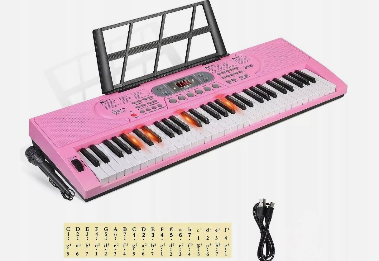 розовая клавиатура hricane с микрофоном, 61 клавиши
