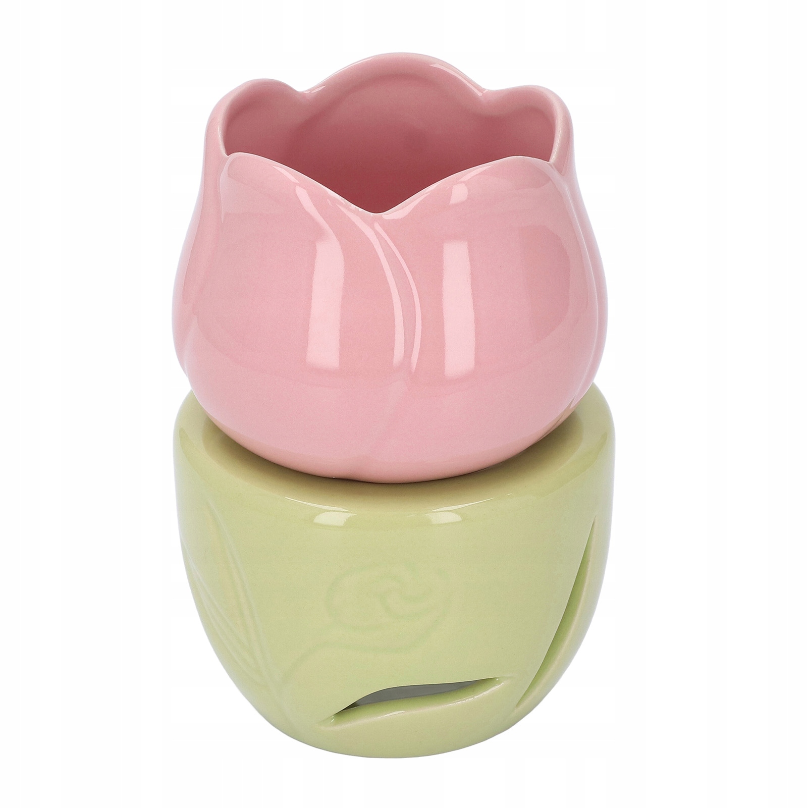 Розовая цветочная керамическая ароматерапевтическая горелка с зеленой