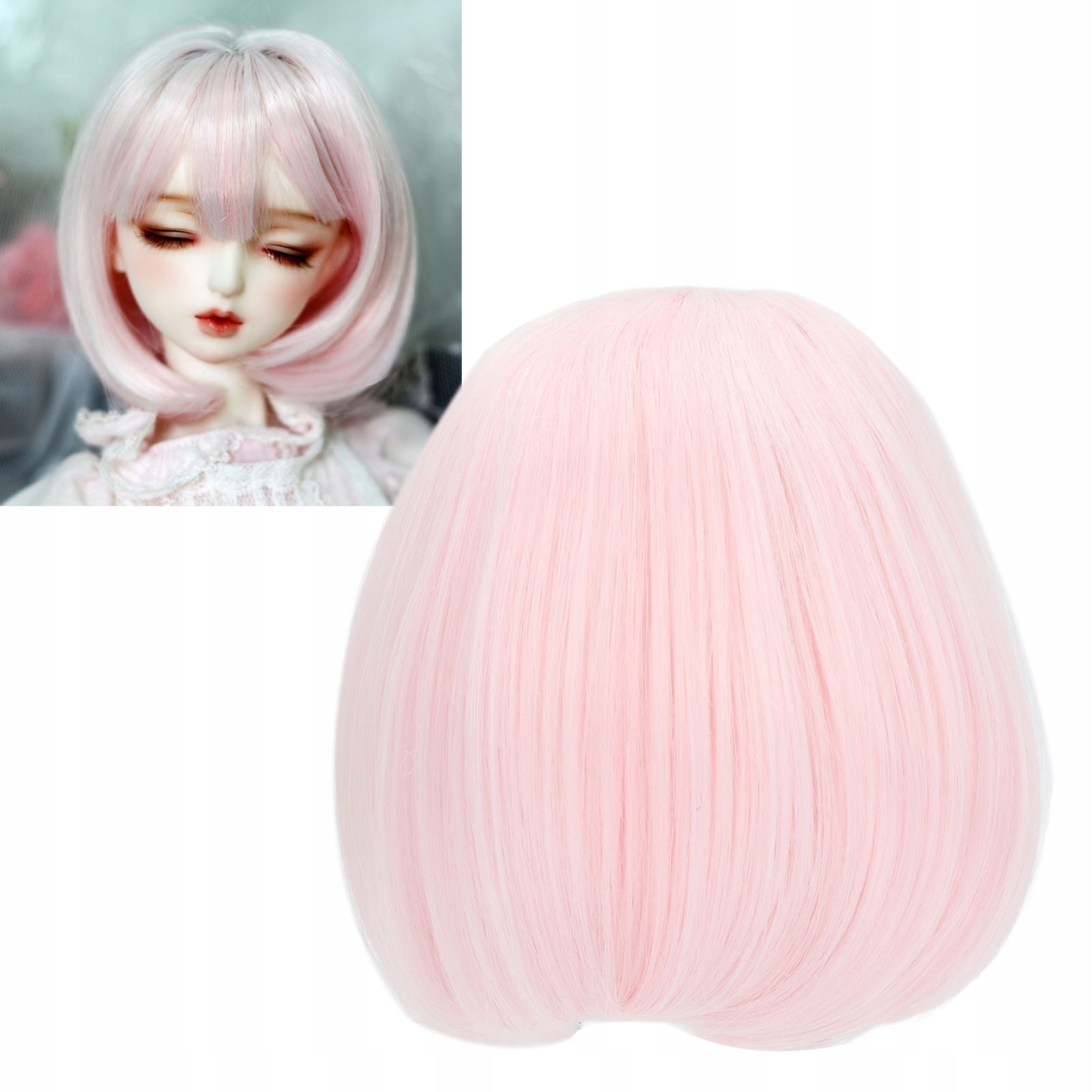 Парик для куклы с прямой челкой до плеч, короткие волосы из мягкого волокна, легкая стрижка для 1/3 BJD, розовый