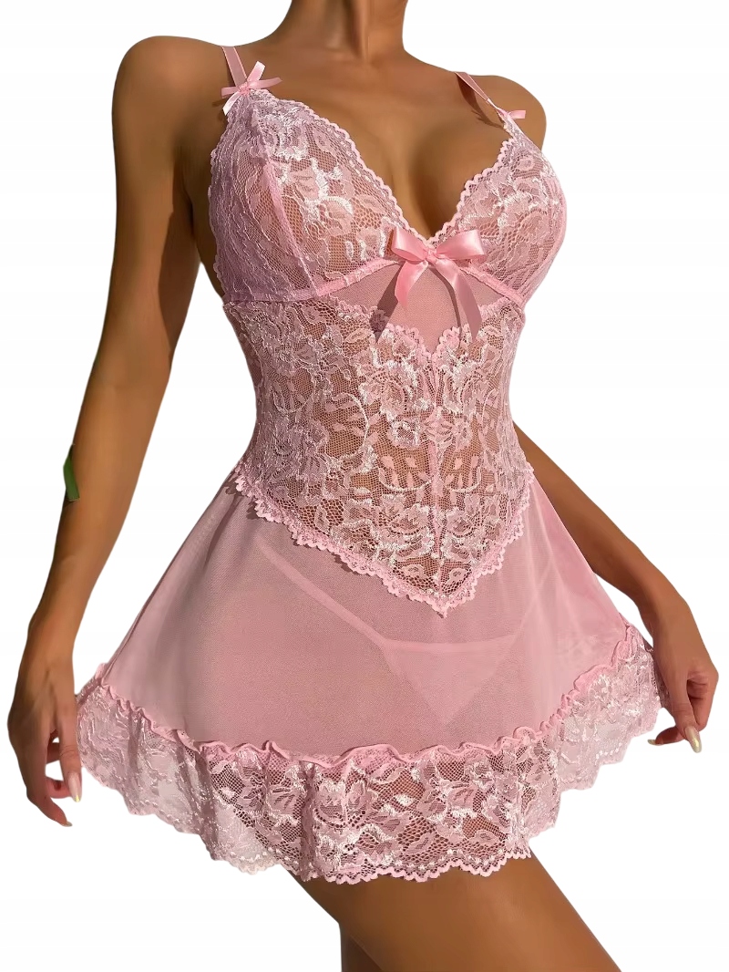 РОЖЕВА ПРОЗОРА КРУЖЕЧНА НІЧНА СОРОЧКА + СТРІНГИ L/XL