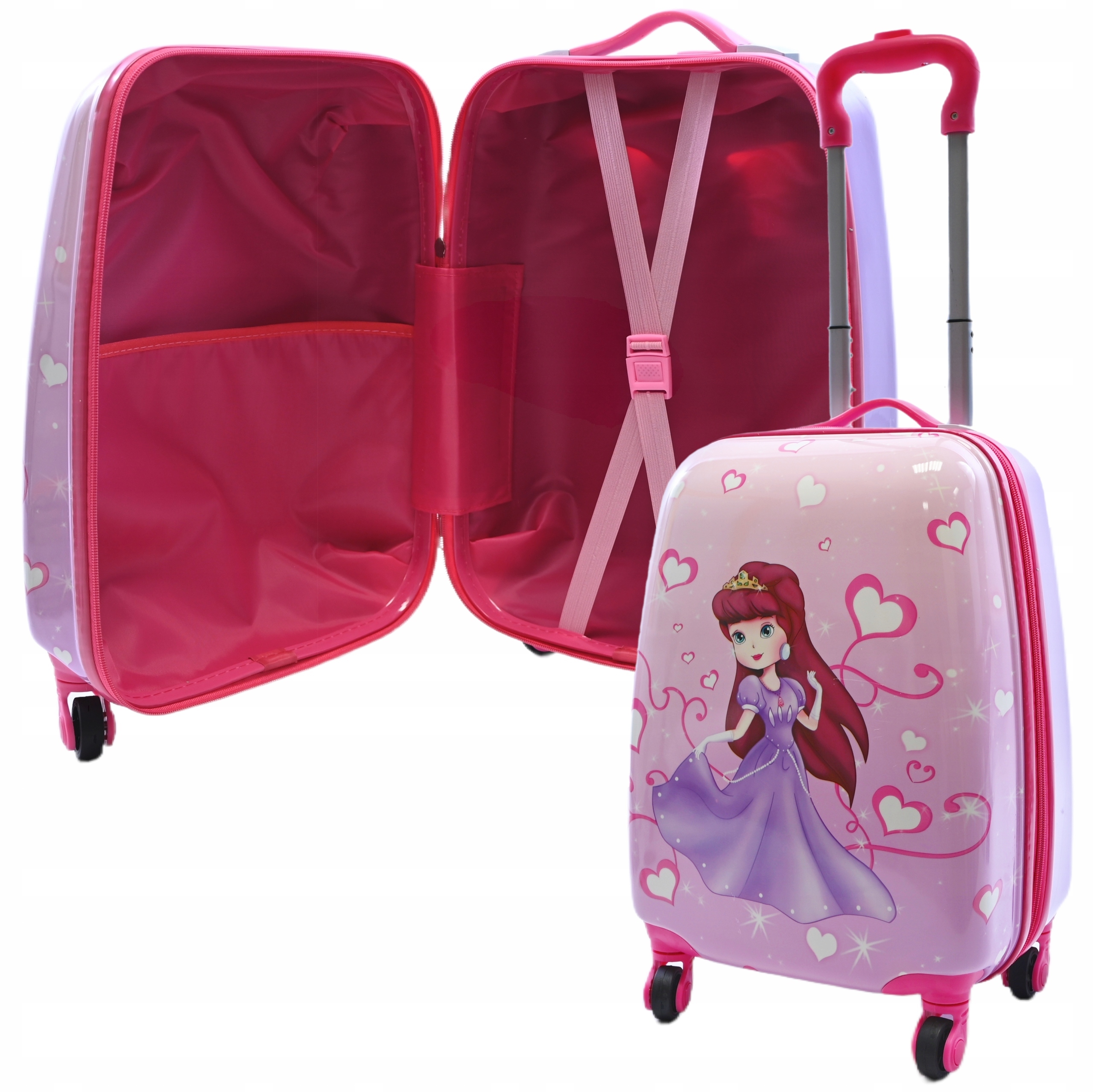 РОЖЕВА САЛОННА ВАЛІЗА ДЛЯ ДІВЧИНКИ БАГАЖ ДОРОЖНЯ СУМКА 4 КОЛЕСА