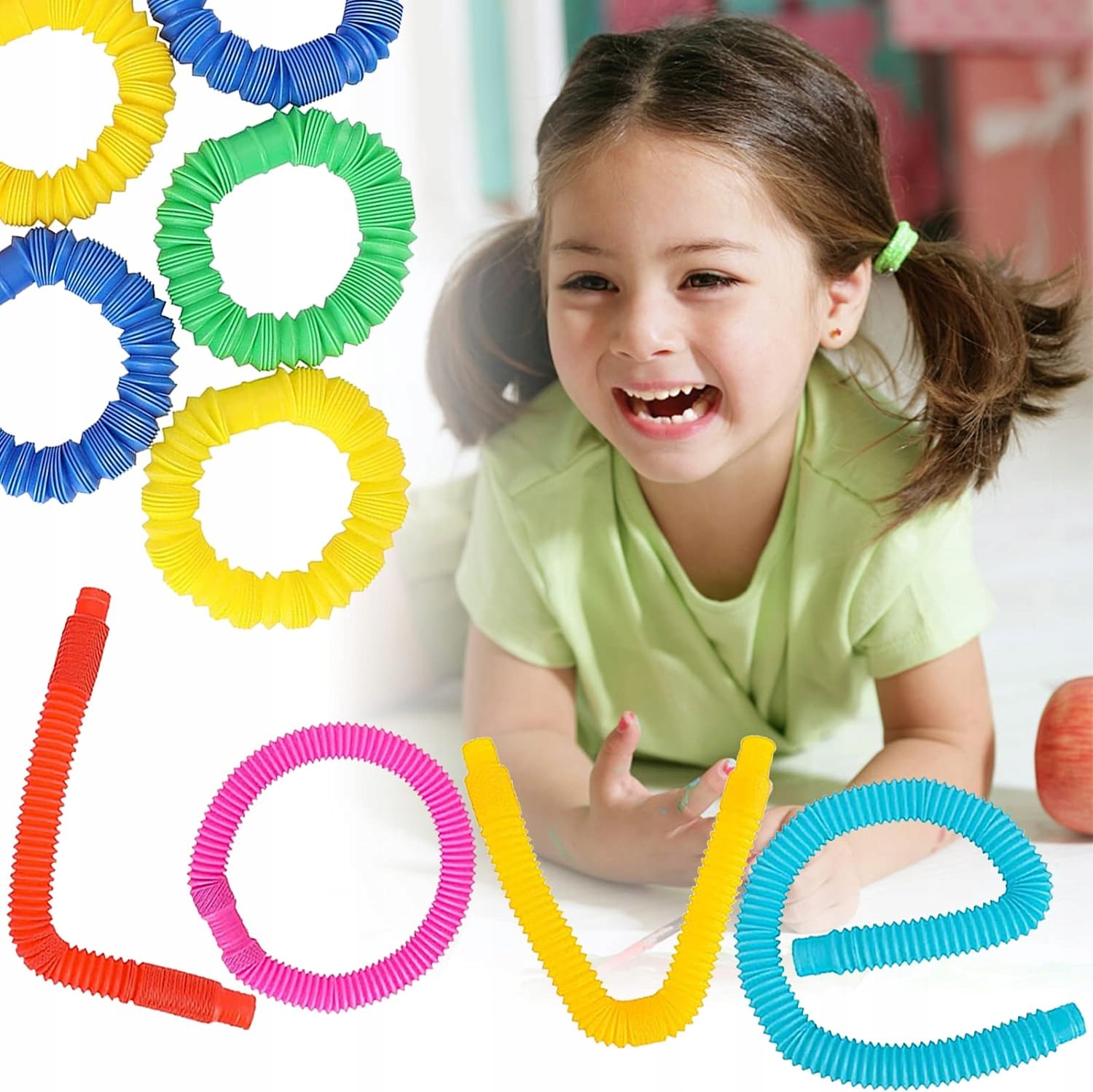 Сенсорные игрушки изготовлены из высококачественного пластика с приятной текстурой. Их можно удлинять, удлинять и соединять, что делает эти трубочки отличным инновационным продуктом.