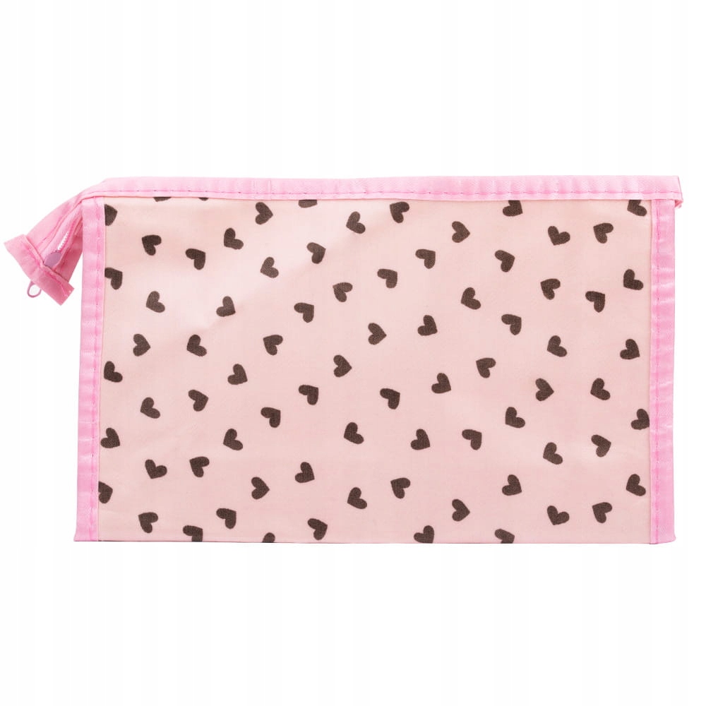 Косметичка водонепроницаемая, светло-розовая с черными сердечками