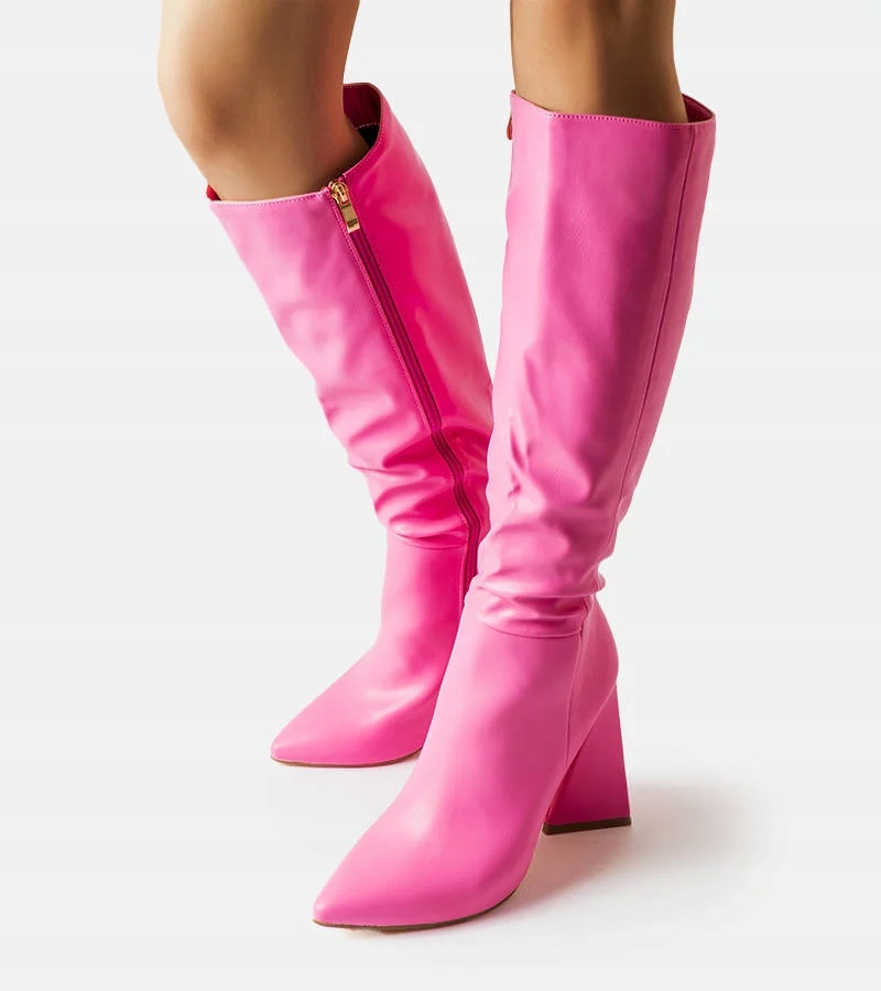 Сапоги имеют практичную молнию сбоку, которая облегчает надевание и снятие обуви. Их модный дизайн и розовый цвет станут идеальным предложением для женщин, которые следят за последними тенденциями моды. Заостренный носок придает этим ботинкам характер и элегантность, подчеркивая их дизайнерский вид. Кроме того, теплая стелька гарантирует комфорт при ношении даже в холодные зимние дни. Чрезвычайно высокий каблук с блочной конструкцией придает им уникальный вид, обеспечивая при этом устойчивость и комфорт при ходьбе. Эти ботинки представляют собой идеальное сочетание функциональности и стиля, которое выделит вас из толпы.