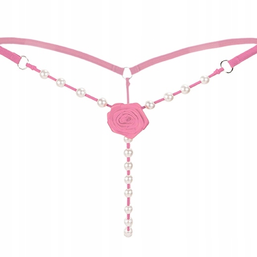 Розовые эротические стринги с бусинками и розой
