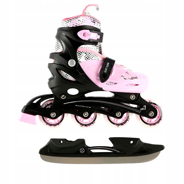 Розовые роликовые коньки 4 в 1, размер M 35–38 NILS EXTREME С хоккейными коньками