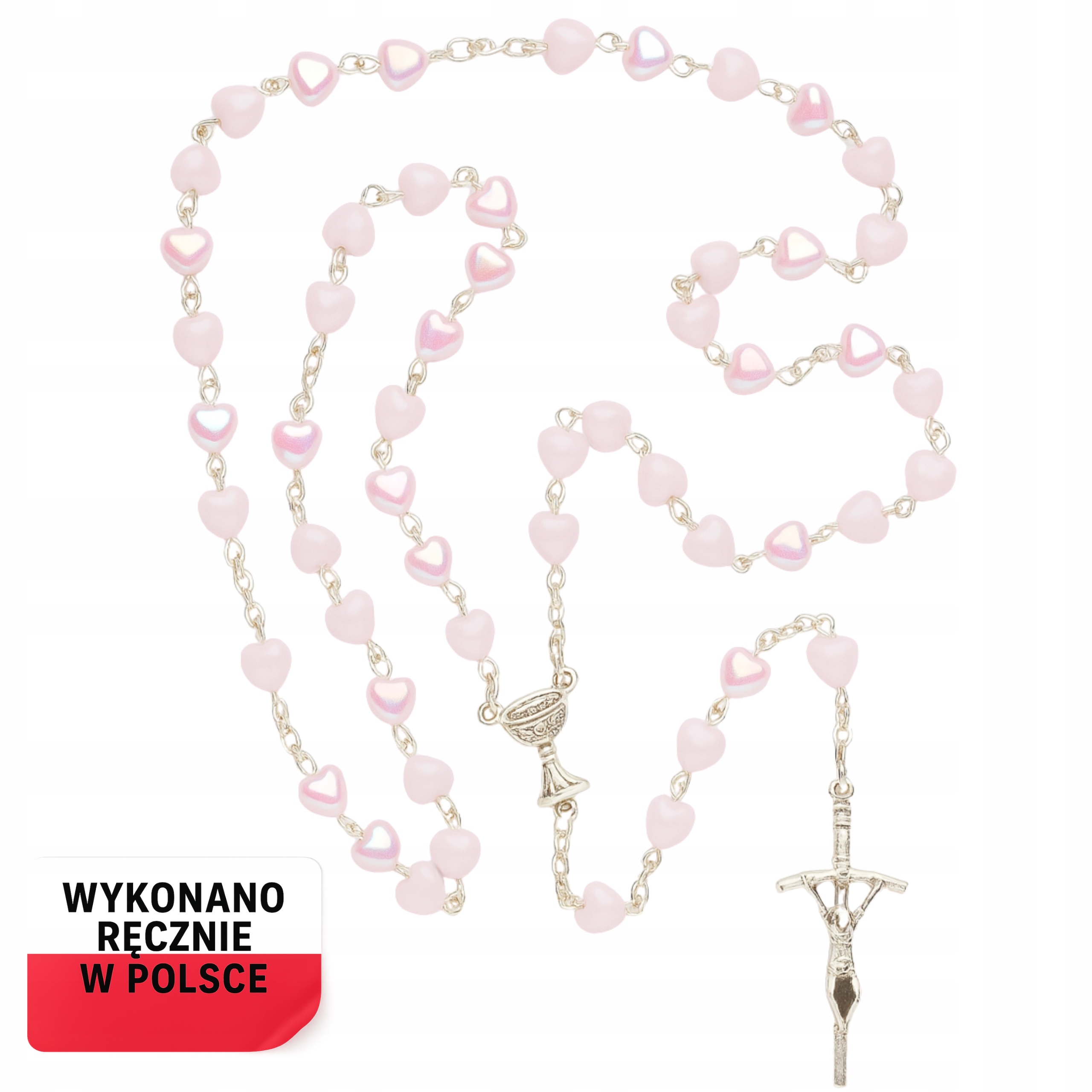 Розарий для причастия с розовыми сердечками, чаша IHS ручной работы для девочки