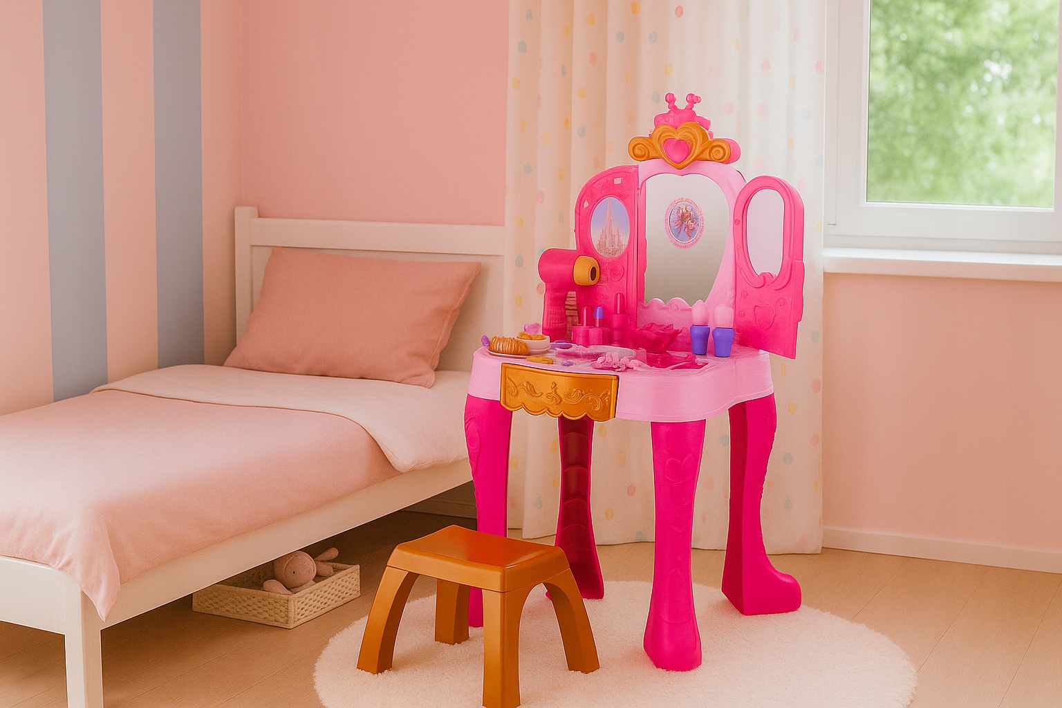 Этот сказочный туалетный столик – не только игрушка, но и инструмент для развития детского воображения, творческих способностей и чувства собственного достоинства. Это место, где мечты стать прекрасной принцессой становятся реальностью, а каждый день начинается с волшебного приключения в королевстве собственного воображения.