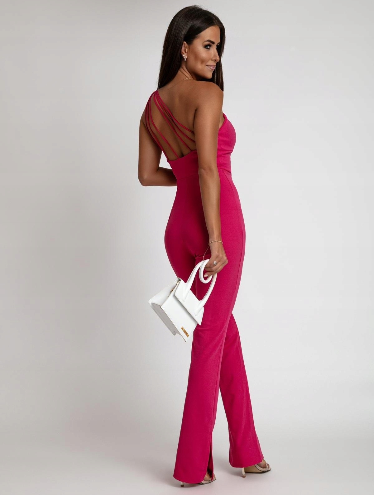 РОЖЕВИЙ ДОВГИЙ КОСТЮМ НА ПЛЕЧІ