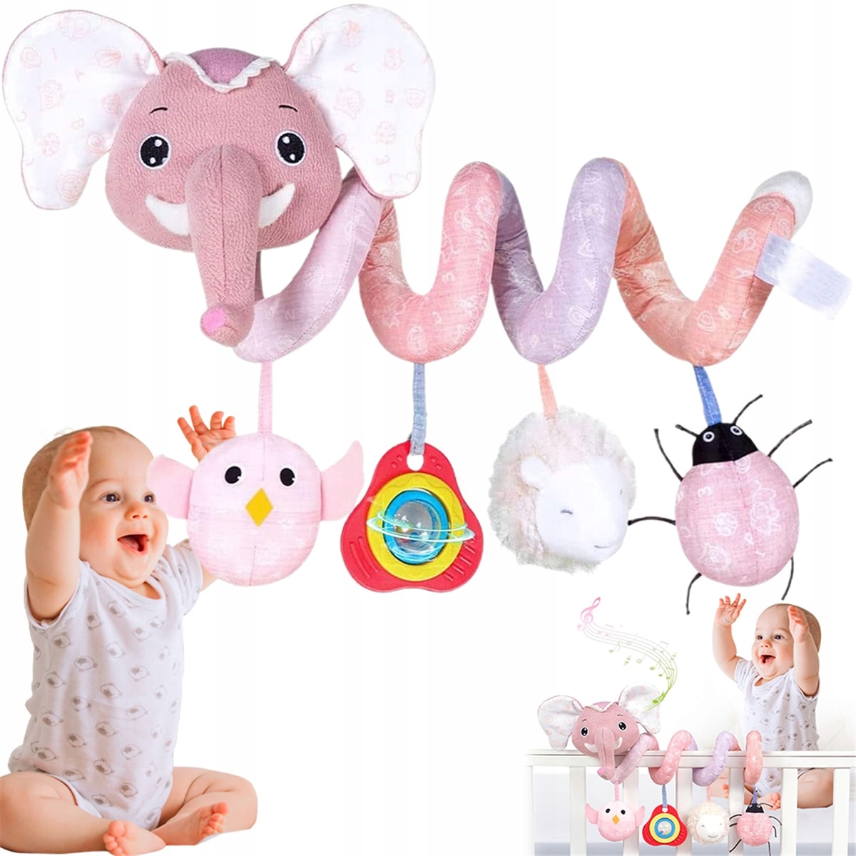 🌟КУЛОН «РОЗОВЫЙ СЛОН» ДЛЯ КОЛЯСКИ, кроватки, СИДЕНЬЯ - ИНТЕРАКТИВНАЯ СЕНСОРНАЯ ИГРУШКА С 4 АКСЕССУАРАМИ 🐘✨