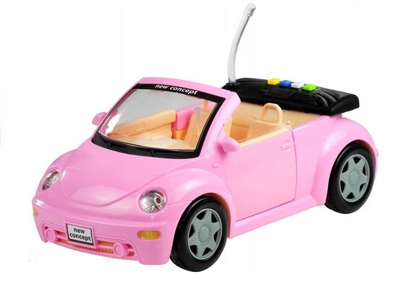 В этой характерной розовой кукольной машине могут разместиться 2 человека: водитель и пассажир. Кабриолет окрашен в красивый розовый цвет и имеет большие колеса.
