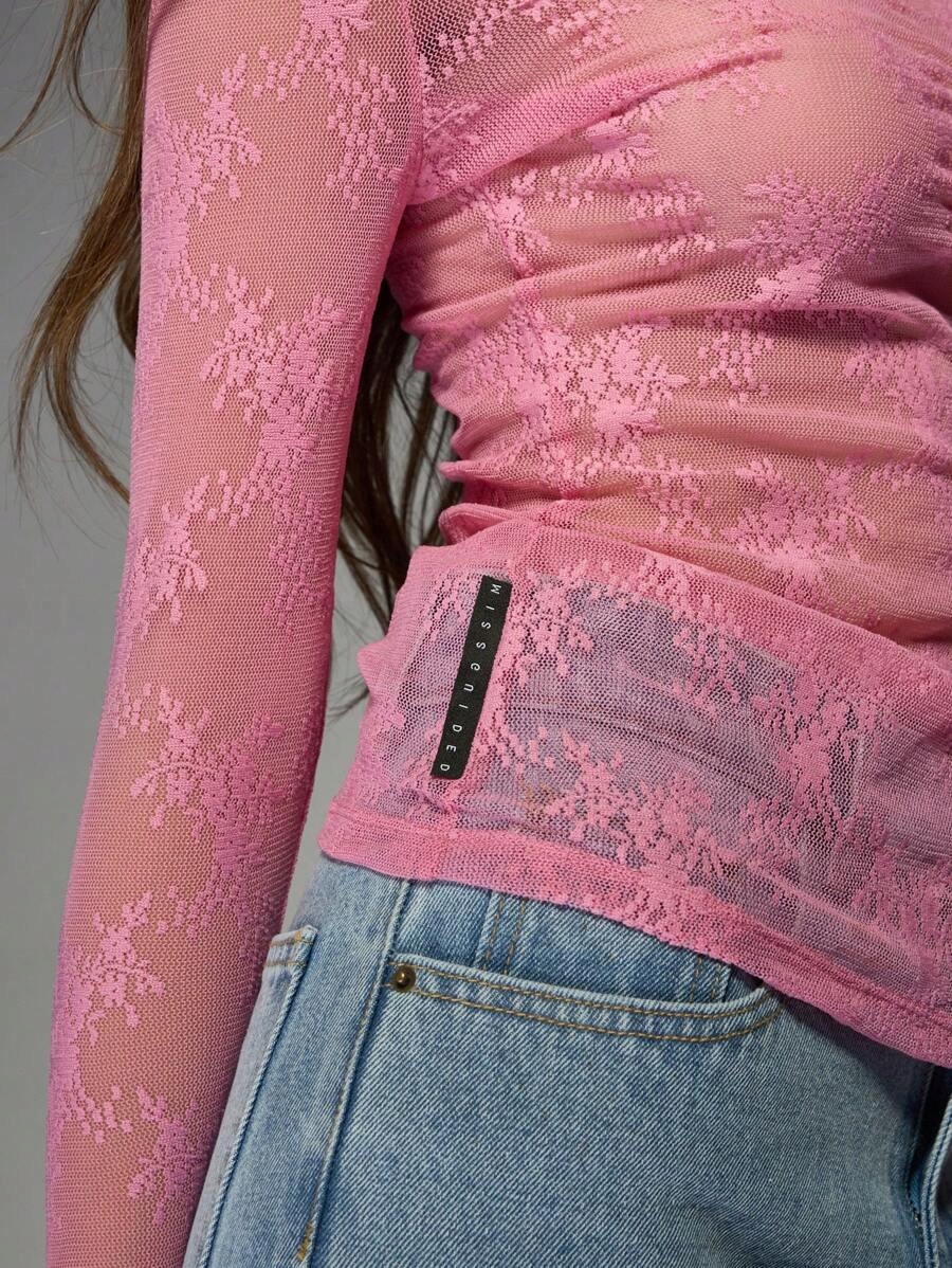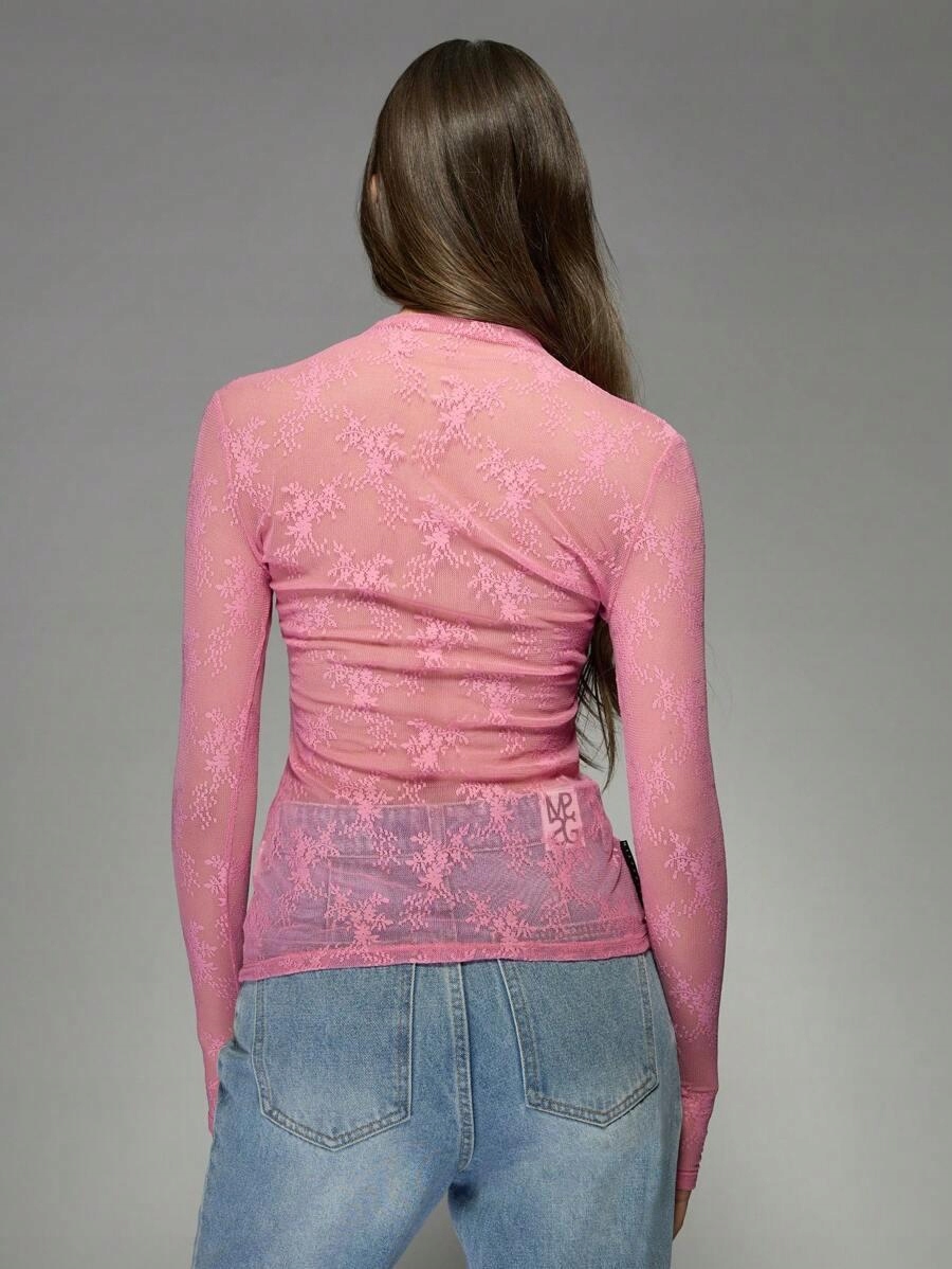 РОЗОВЫЙ КЛАССИЧЕСКИЙ ТОП, ДЛИННЫЕ РУКАВА, ПРЯМОЙ ВЫРЕЗ, НЕПРАВИЛЬНЫЙ УЗОР L