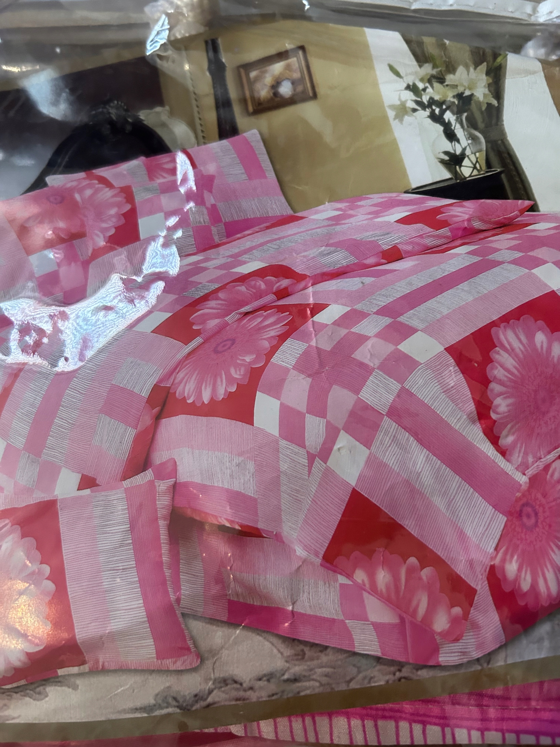 Розовый лист с хлопковыми цветами 220x240см шанс / i1