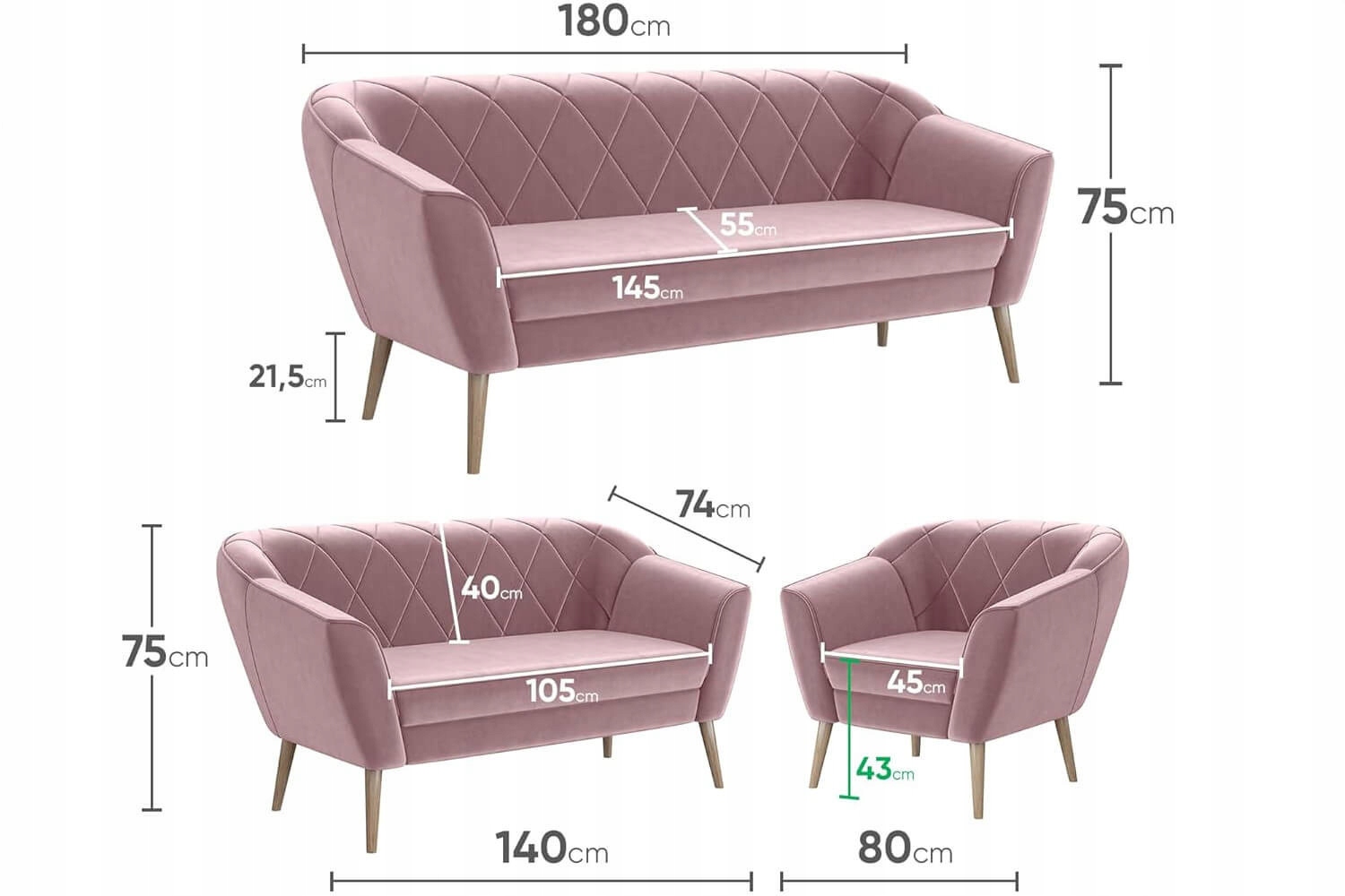 Розовая мебель диван 140 см диван 180 см 3+2 с шитью на ногах Глори