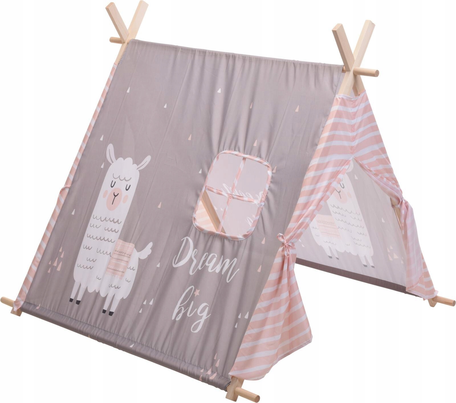 Маленьким детям нужно много стимулов, чтобы стимулировать развитие их энергичной личности. Чтобы обеспечить им максимальное и безопасное развлечение, мы должны позаботиться о соответствующем пространстве, чтобы они могли свободно наслаждаться каждым моментом, проведенным во время дневных шалостей. Розоваядетская палатка может стать началом приключения, которое мы создадим вместе с ребенком. Палатка из полиэстера дополнена рисунком веселой альпаки и распашным окном. Вся конструкция основана на деревянном сосновом каркасе. Палатка идеальна для игр в саду, на детской площадке или просто в домашнем интерьере.