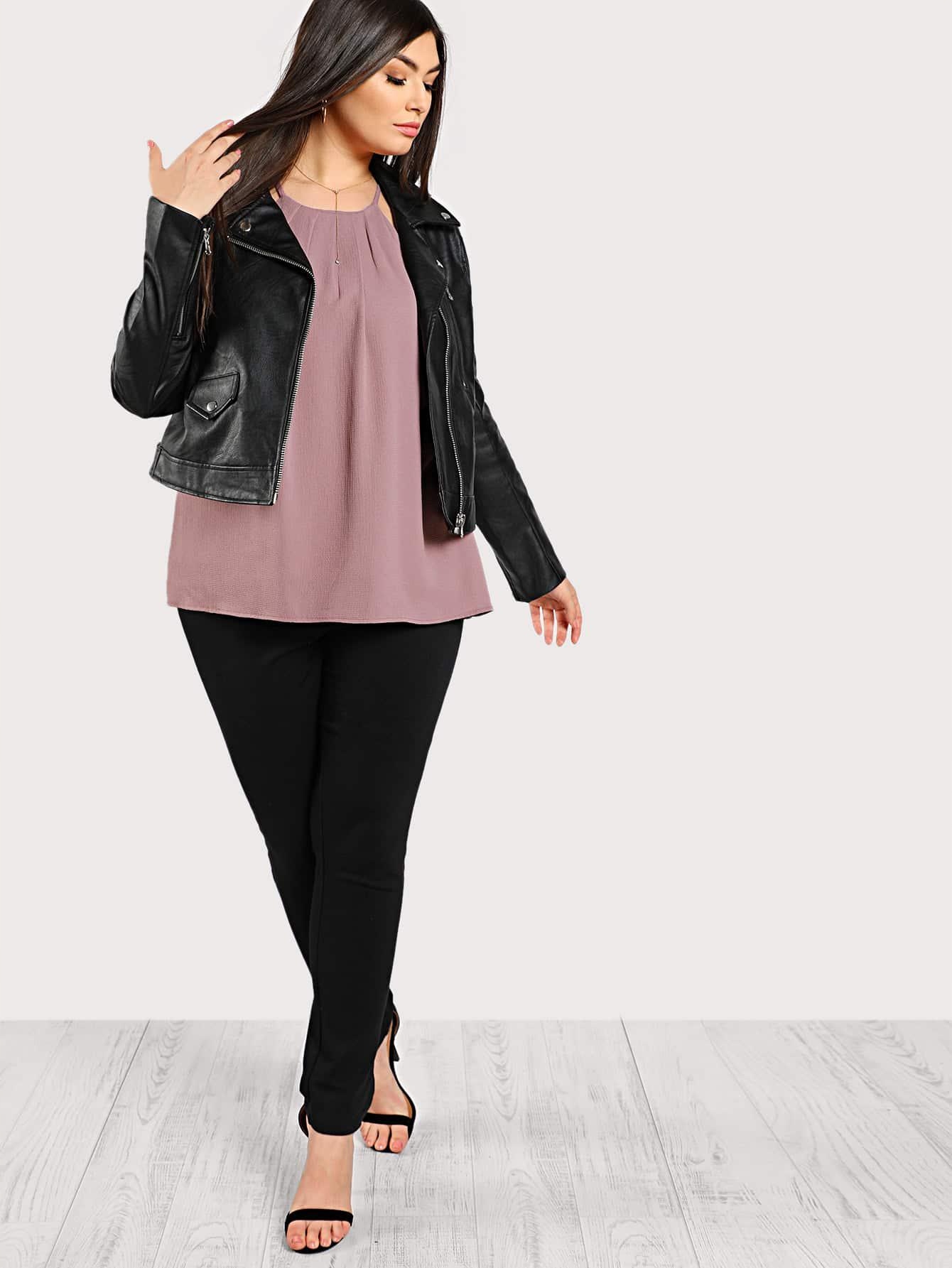 Розовый свободный верхний круглый вырез плюс шейн 48
