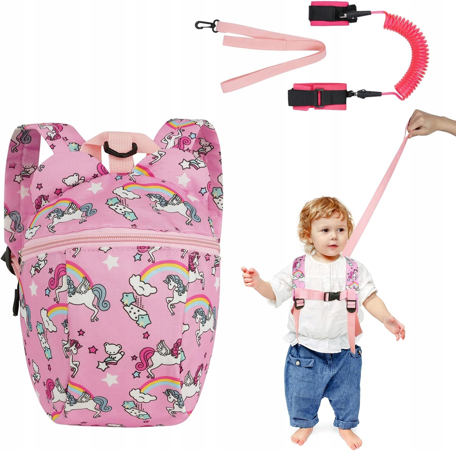 Рожевий рюкзак із ремнем безпеки та шнурком із єдинорогом
