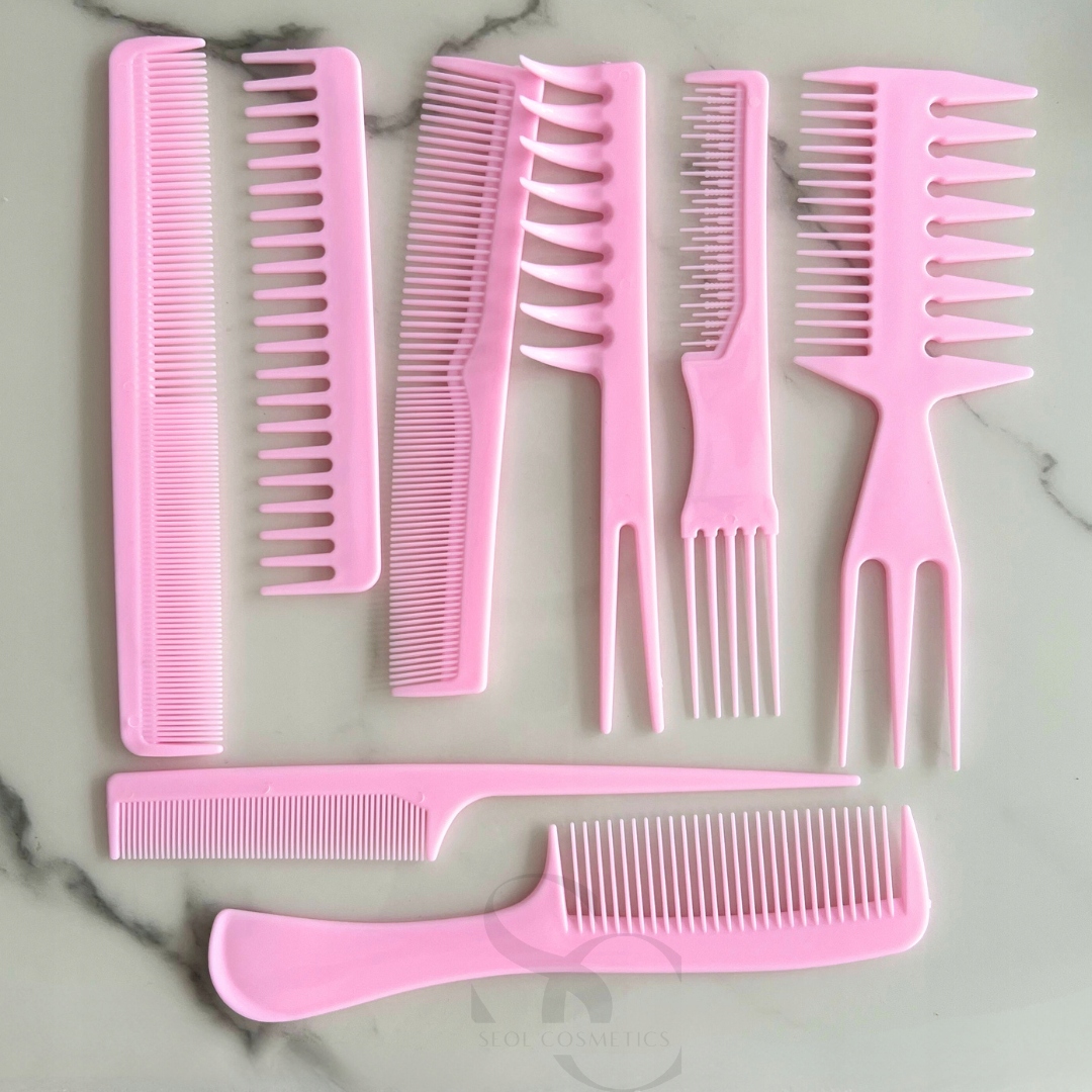 💗Набор розовых расчесок 8 штук - Незаменимый набор для ухода за волосами, расчесывания, укладки, бережно относится к волосам, не тянет, идеален для домашнего использования.