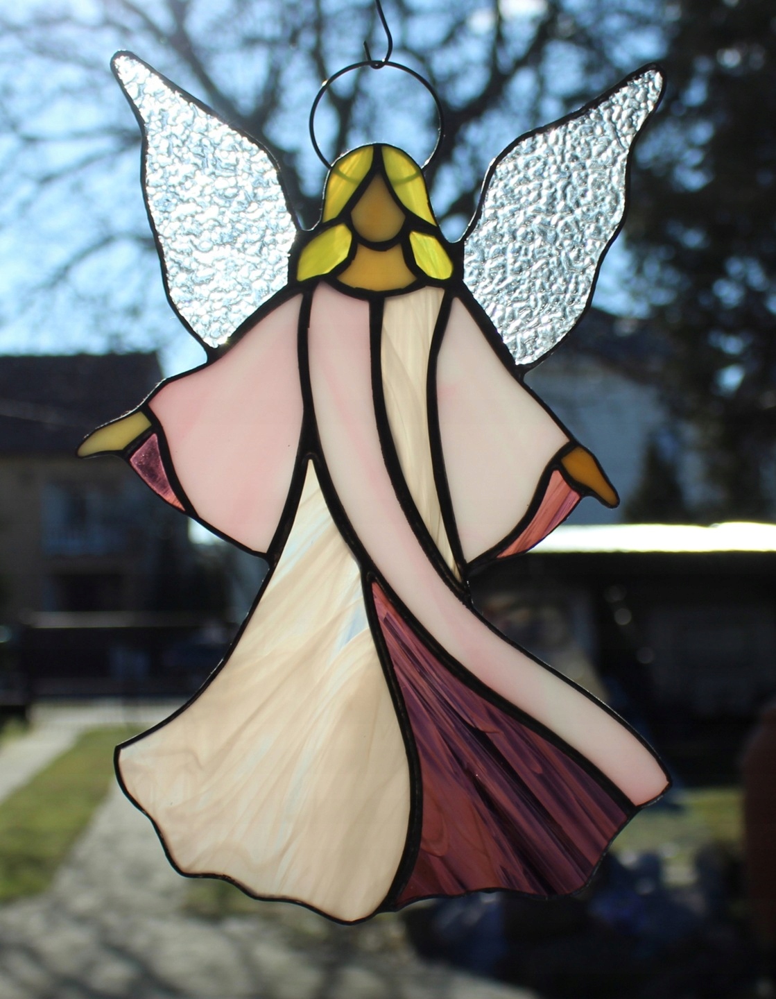 Рожевий вітражний ангел Тіффані