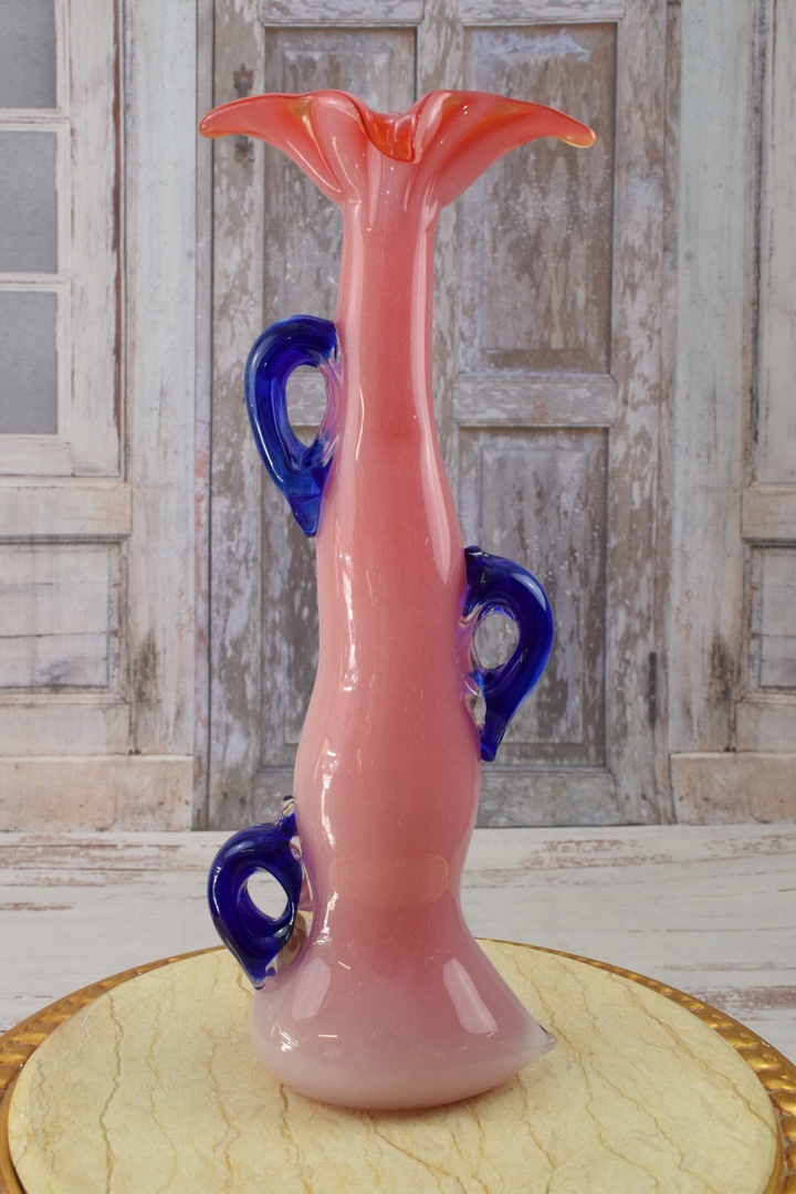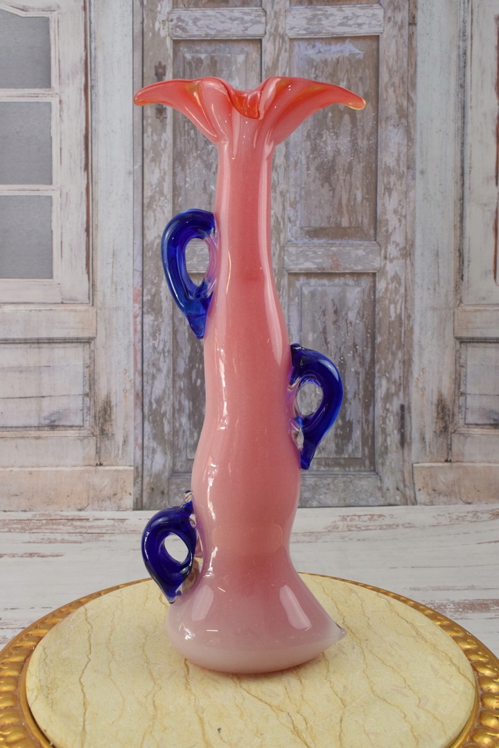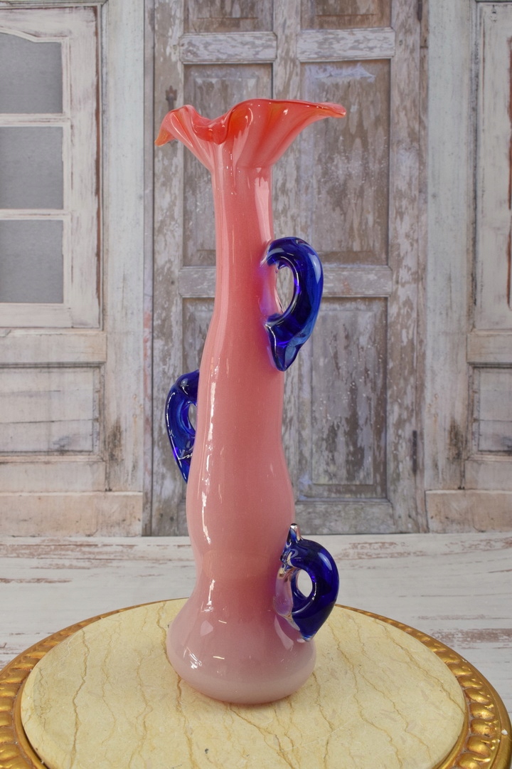 Рожево-блакитна ваза в муранському стилі - товсте італійське скло - подарунок