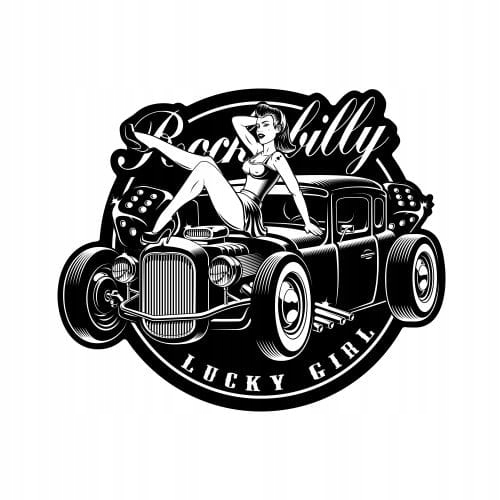 Наклейка «Хот-род» в стиле рокабилли с девушкой в стиле пин-ап