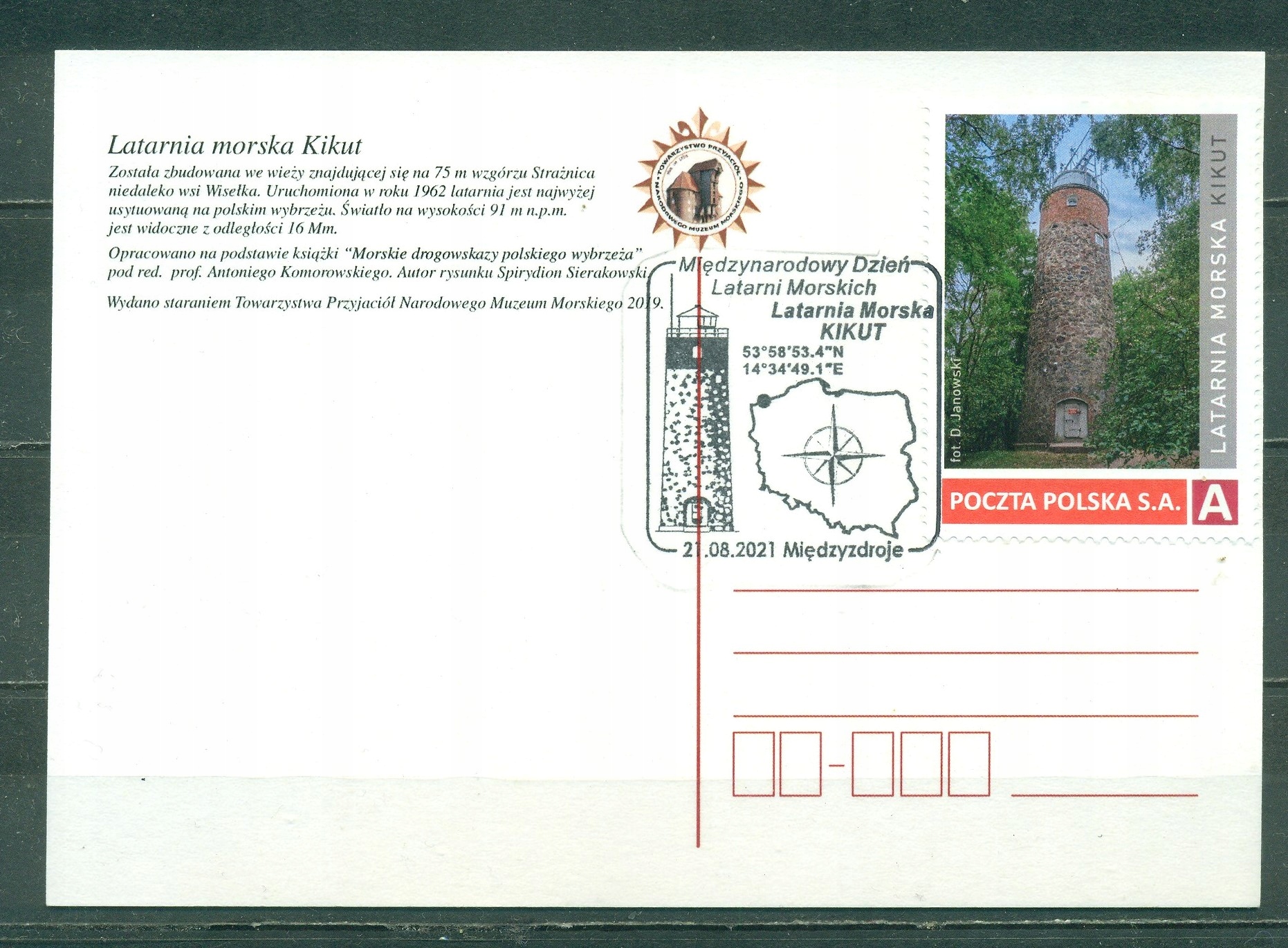Карта, выпущенная по случаю Международного Дня моря в Ладардии - № 16/2021 /Szczecin - с «моей маркой» и случайной маркой с латинским каменным фонарем. /значение как на Skan/