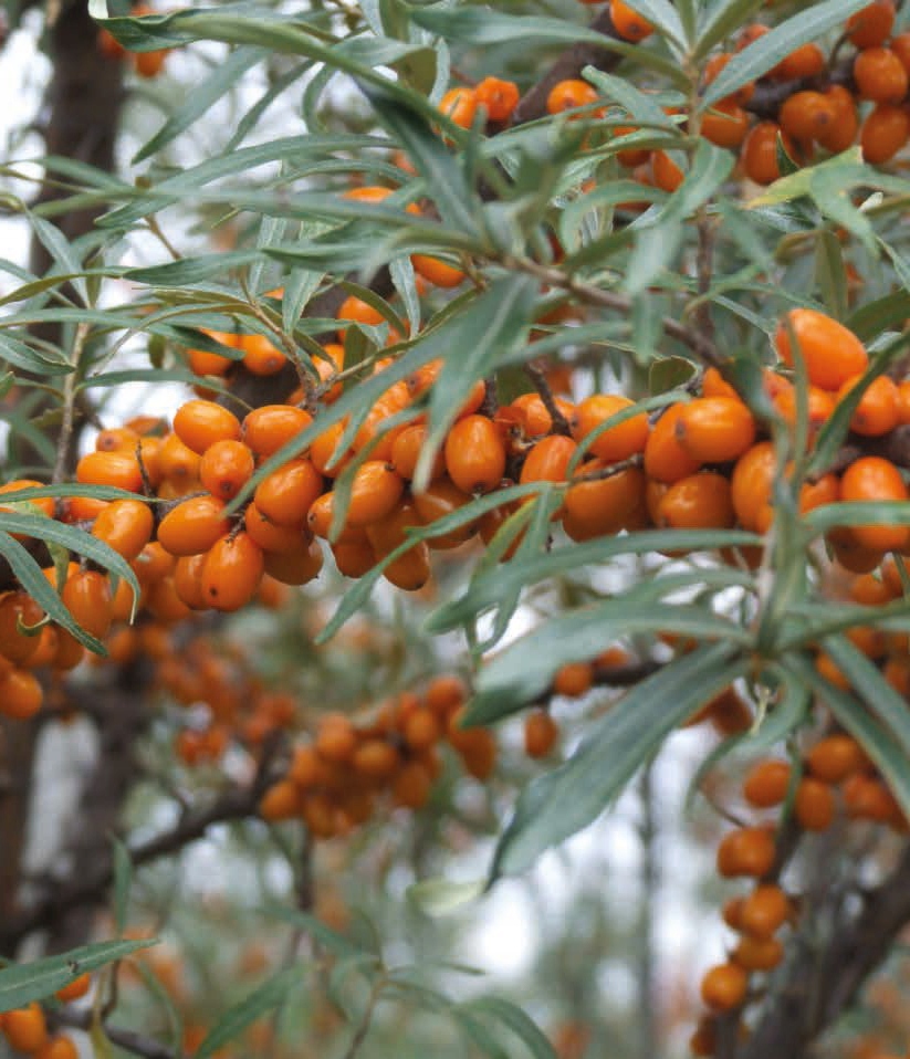 Плоды: оранжевые, продолговатые, облепиховые плодоносит обильно, имеет кислое послевкусие, средняя масса плода 0,7 г.
