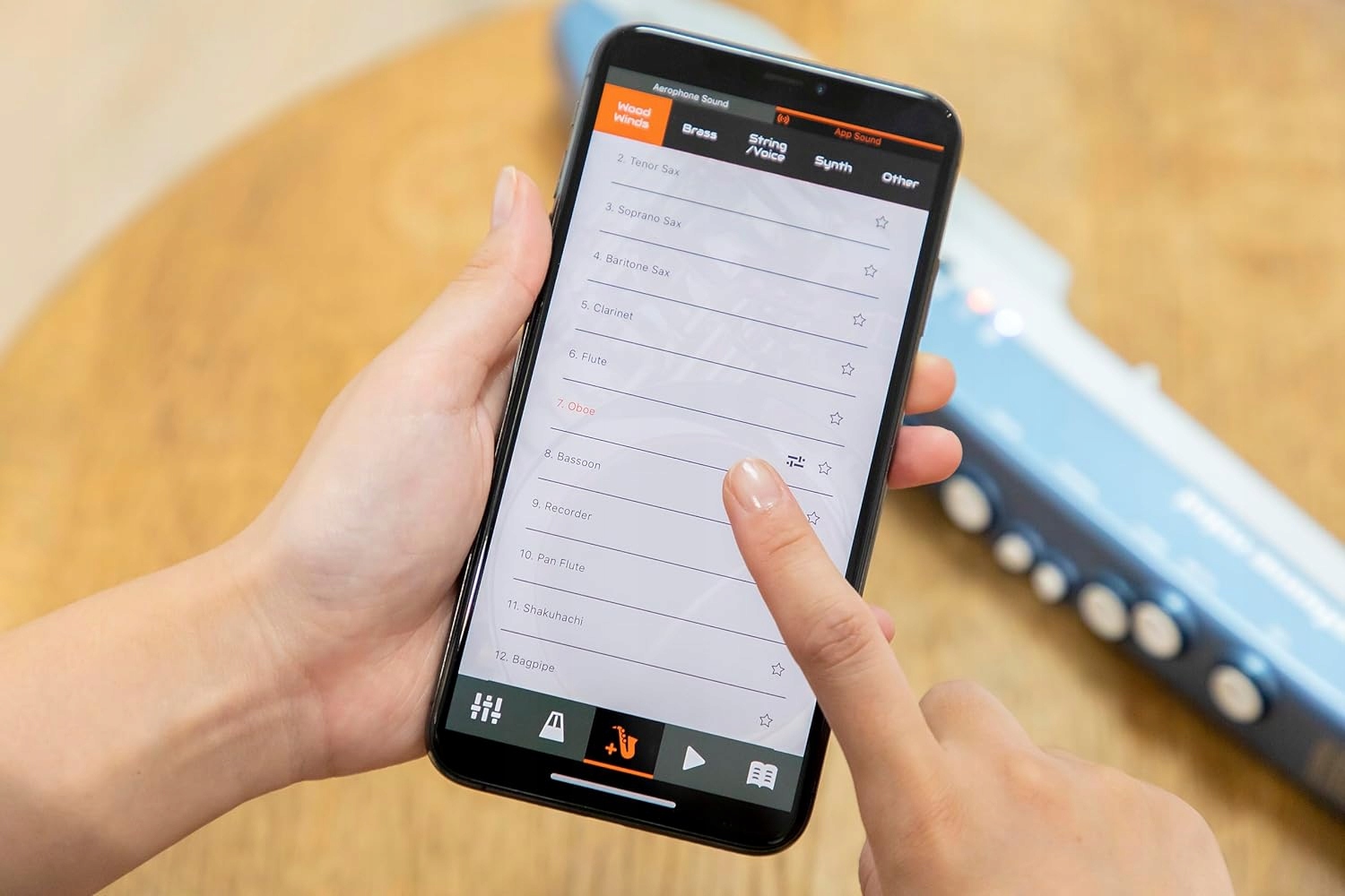 Доступ к более чем 50 дополнительным звукам в бесплатном приложении Aerophone mini Plus для устройств iOS и Android.
