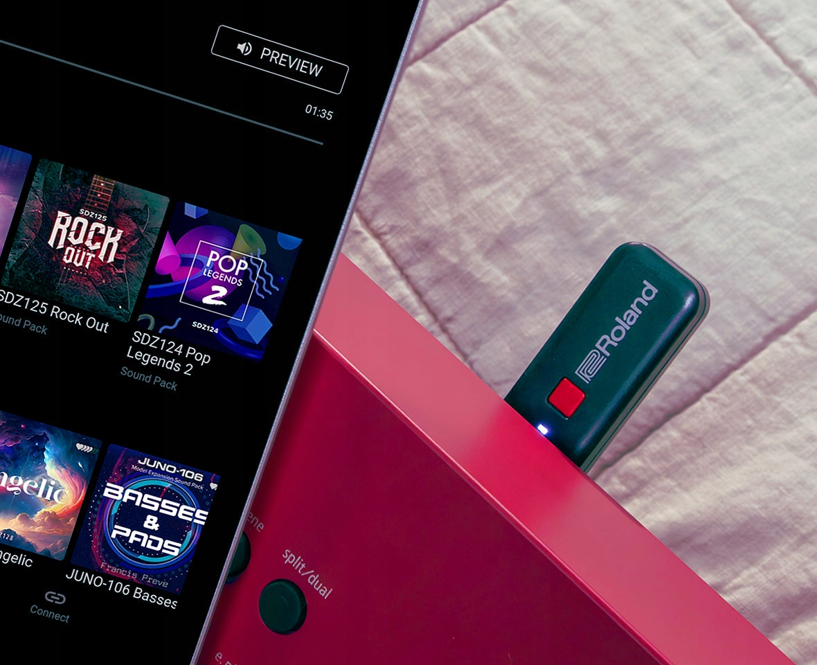 Вам нужно больше вдохновения? Roland Cloud предлагает постоянно растущий выбор премиальных звуков и захватывающих новых стилей расположения. GO: Keys 3 также поддерживает Roland Cloud Connect, дополнительное беспроводное адаптер, который позволяет просмотреть, слушать и загружать Cloud Content Roland с смартфона
