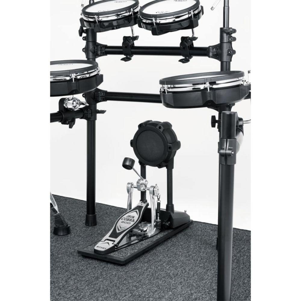- пункт списка: уменьшает передачу вибрации на землю, обеспечивает меньшее ощущение шума в соседних помещениях, снижает помехи в соседних комнатах, удобные размеры для большинства педалей, барабанов